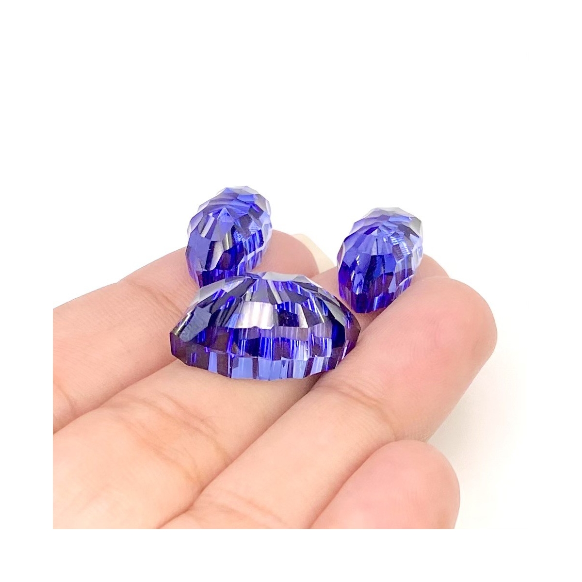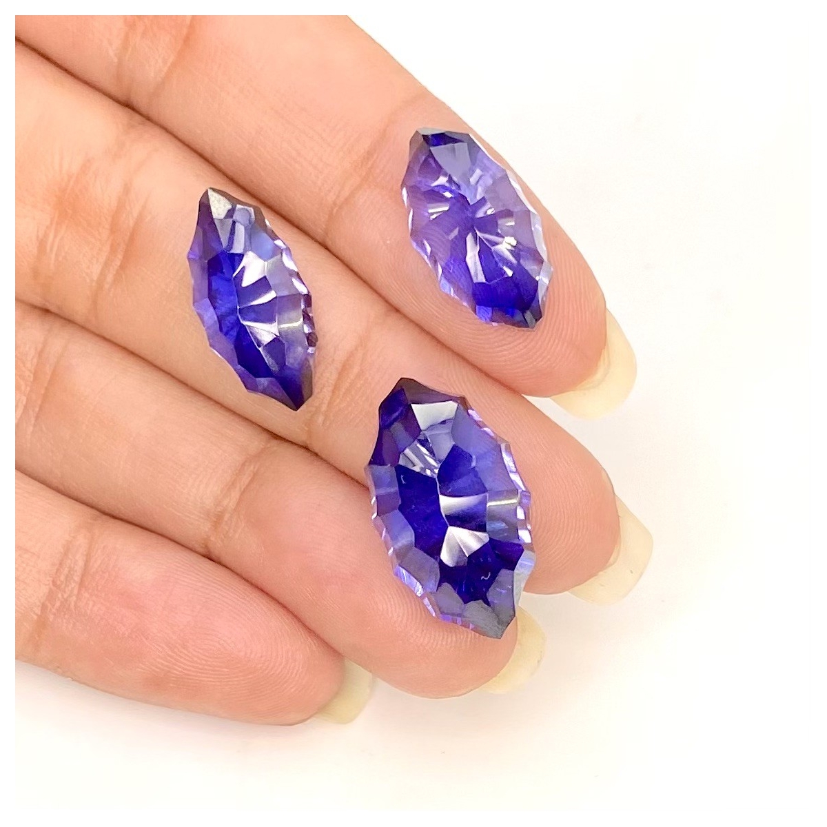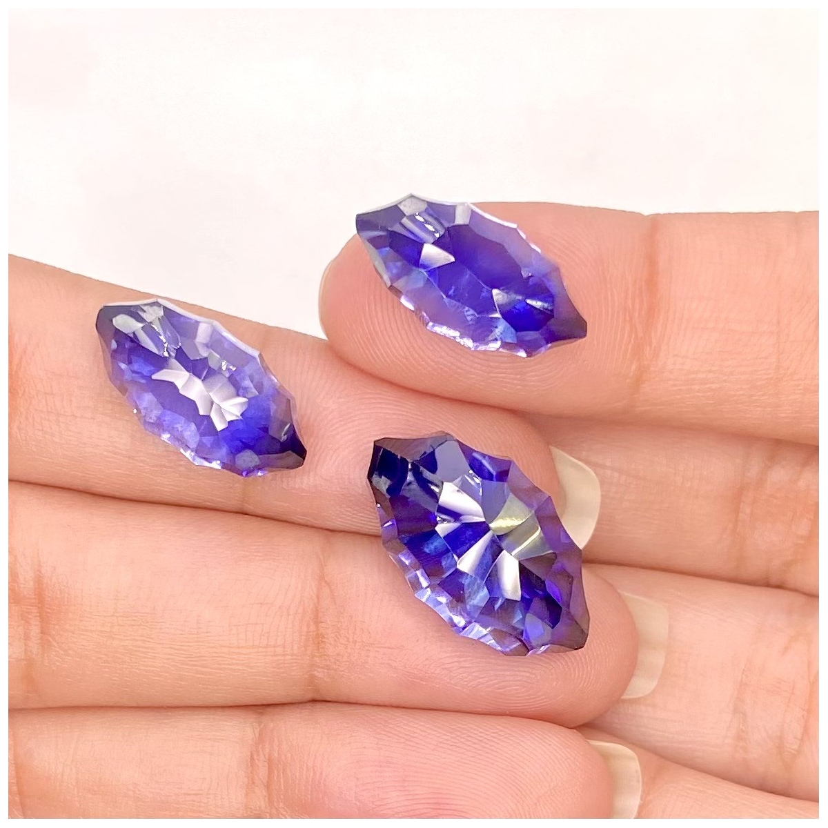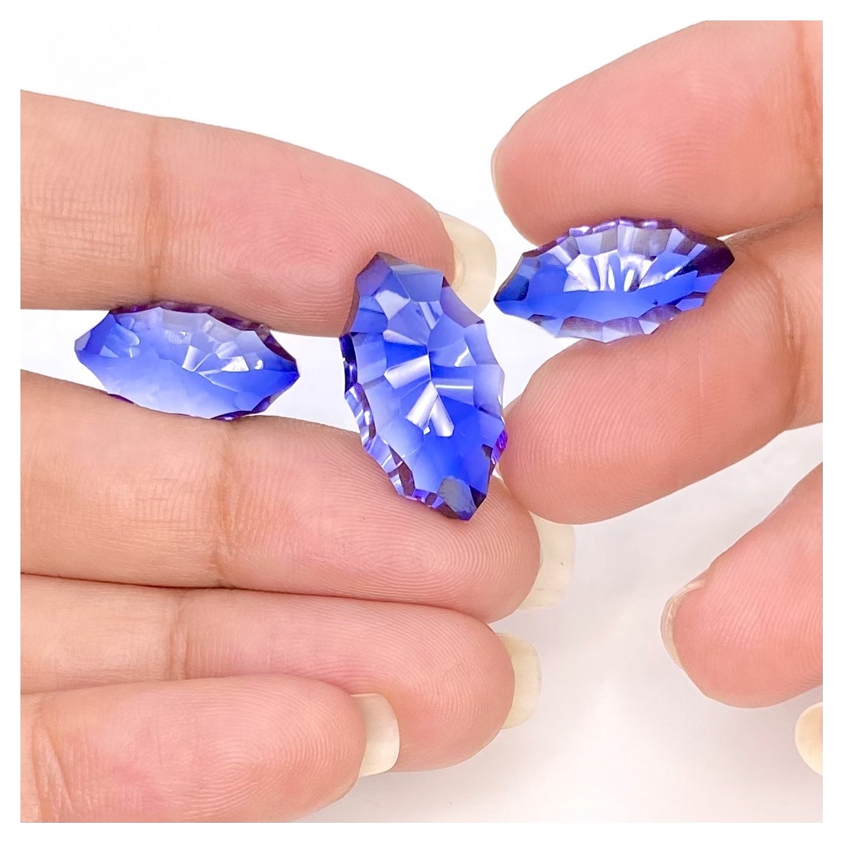 Buy This "AAA" Grade 20x11.5-17.5x8mm Concave Cut Marquise Shape Created Lab Blue Sapphire (Lab Grown) Matched Cabochons Set. You Will Receive 3 Pcs. With a Total Weight of 42.60 Carat. This Lab Blue Sapphire Stone is Originated From Russia and Masterfully Handcrafted by The Experienced Artisans of Jaipur (India).
