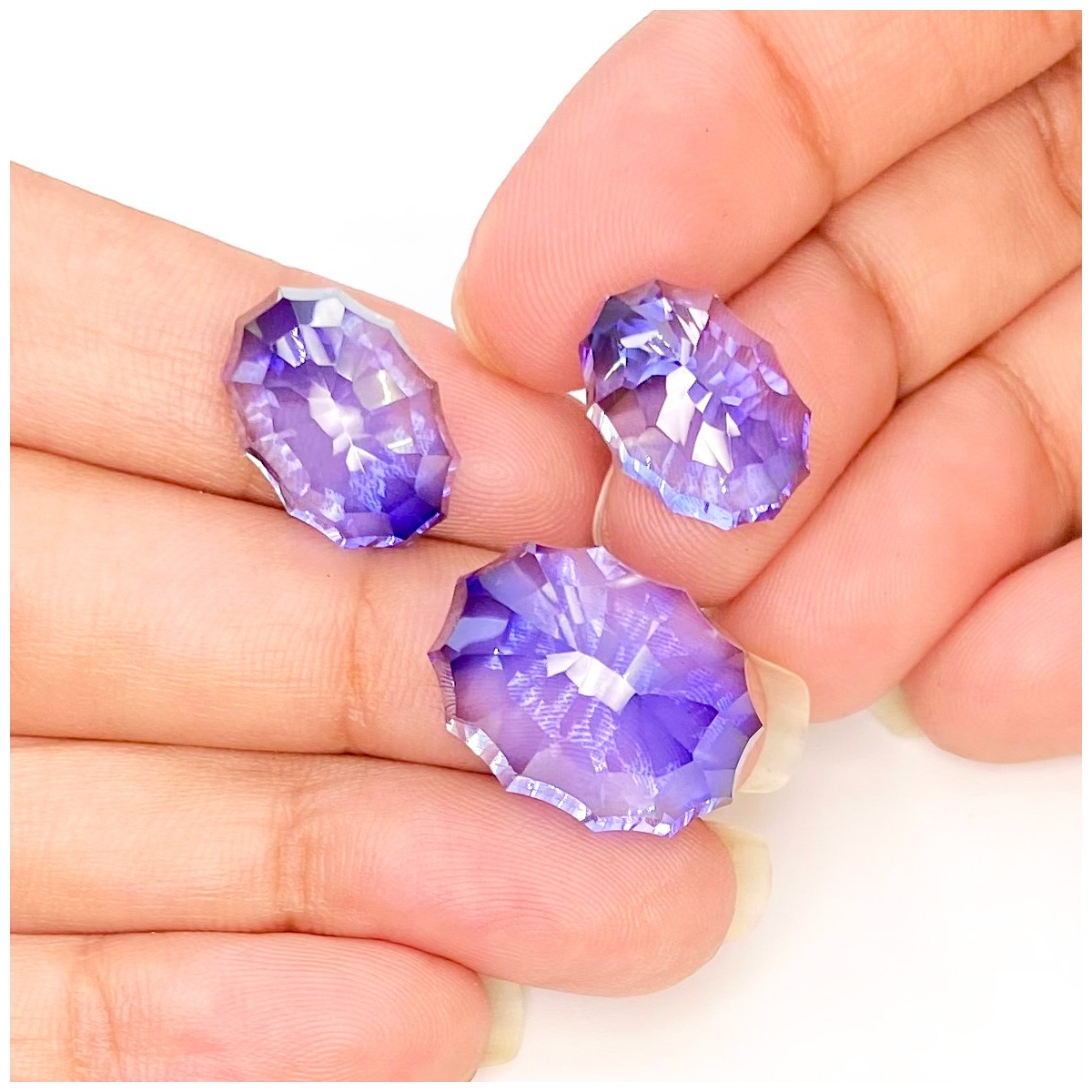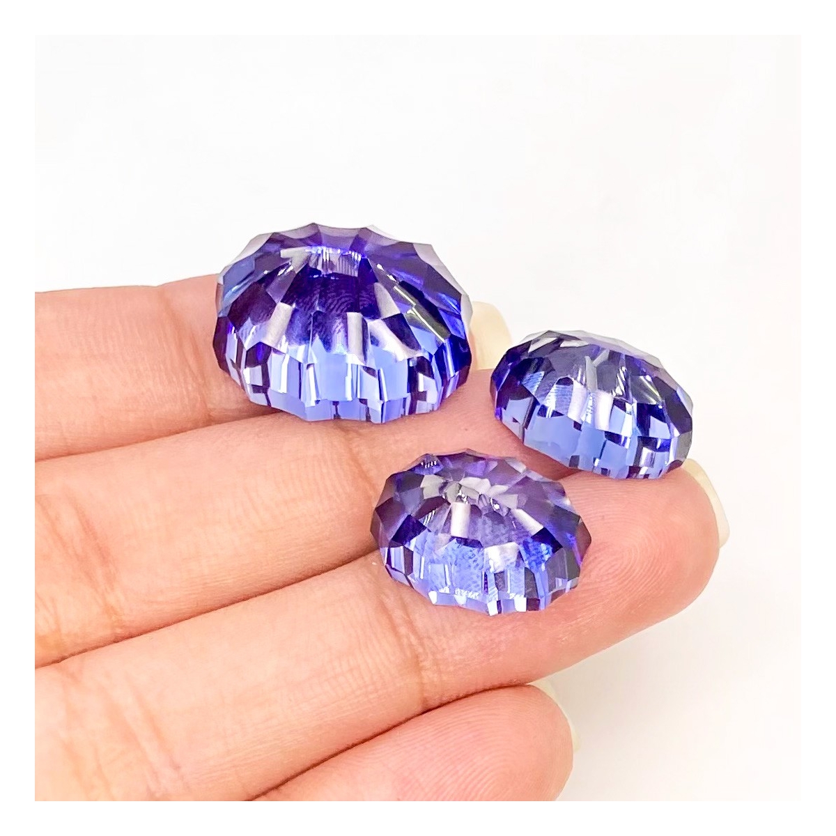 Buy This "AAA" Grade 19x14-15x11mm Concave Cut Oval Shape Created Lab Blue Sapphire (Lab Grown) Matched Cabochons Set. You Will Receive 3 Pcs. With a Total Weight of 54.20 Carat. This Lab Blue Sapphire Stone is Originated From Russia and Masterfully Handcrafted by The Experienced Artisans of Jaipur (India).