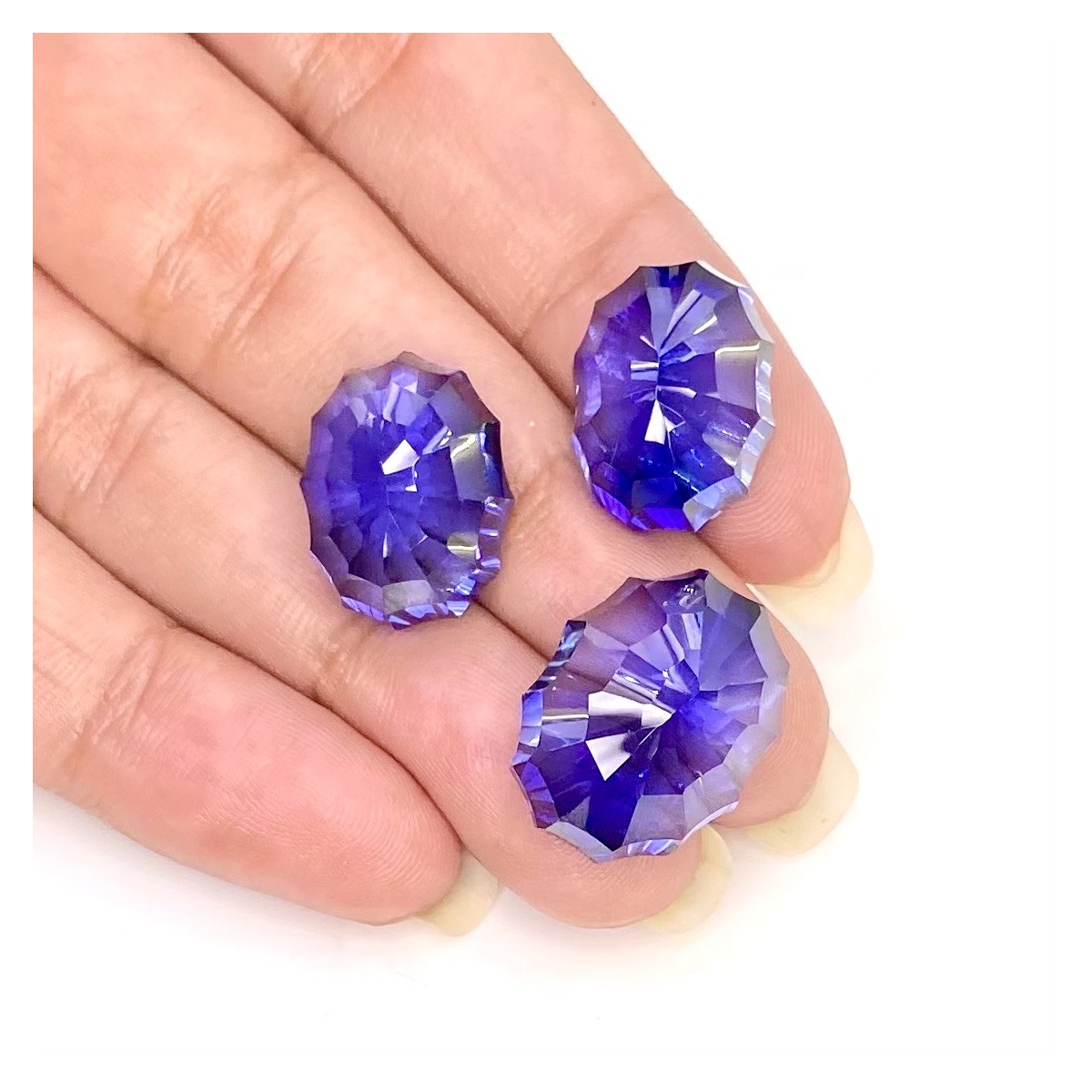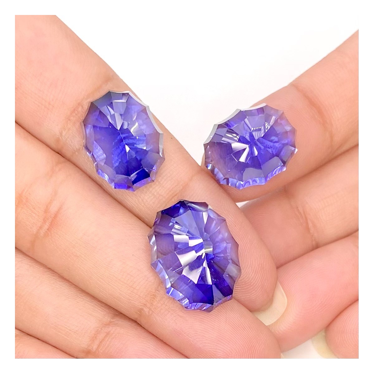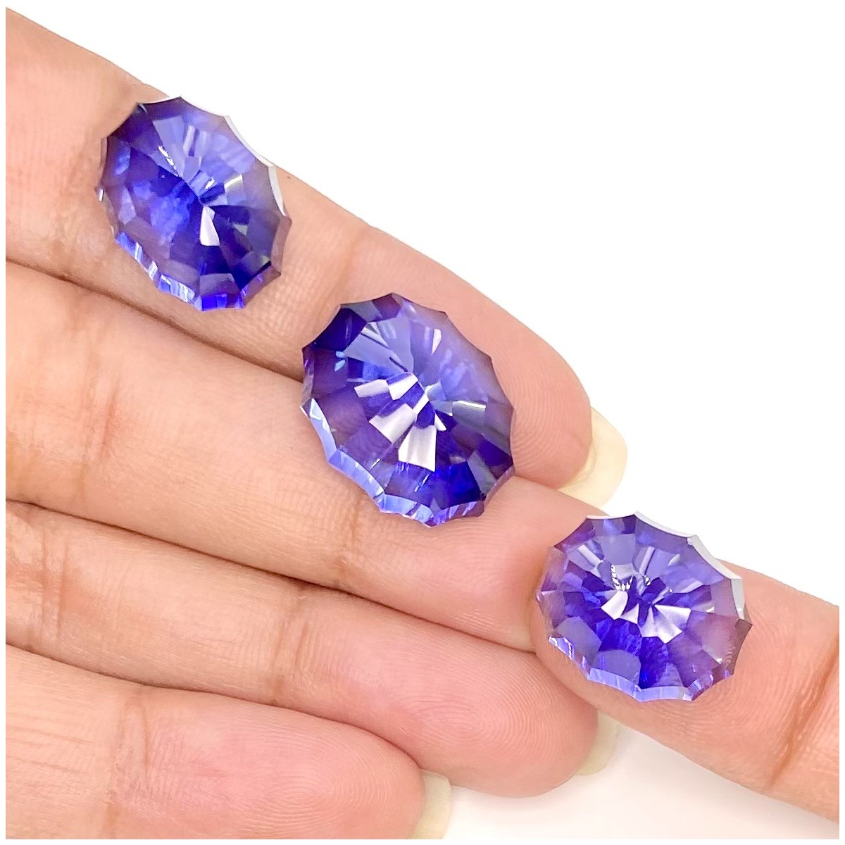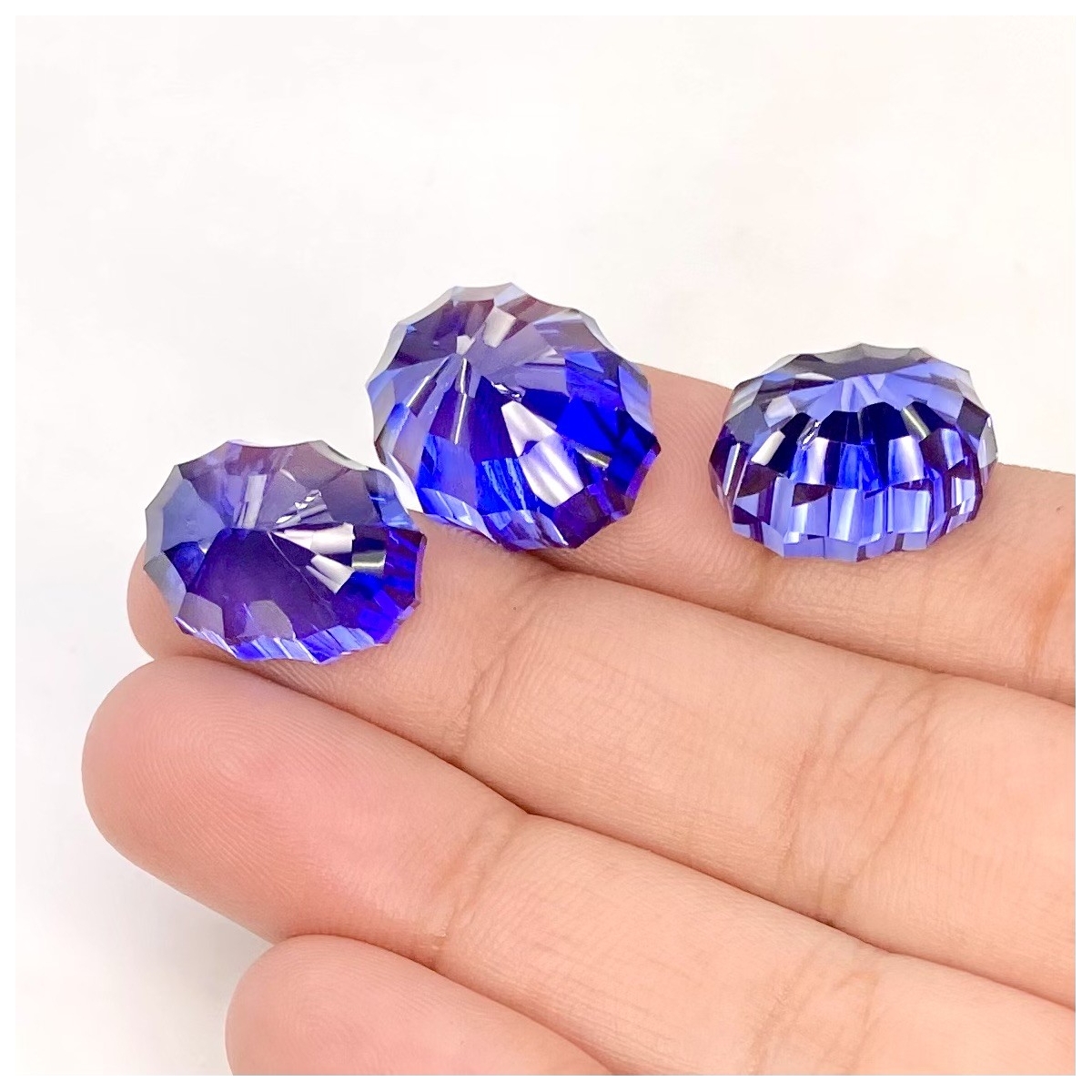 Buy This "AAA" Grade 18.5x14-16x12mm Concave Cut Oval Shape Created Lab Blue Sapphire (Lab Grown) Matched Cabochons Set. You Will Receive 3 Pcs. With a Total Weight of 60.35 Carat. This Lab Blue Sapphire Stone is Originated From Russia and Masterfully Handcrafted by The Experienced Artisans of Jaipur (India).
