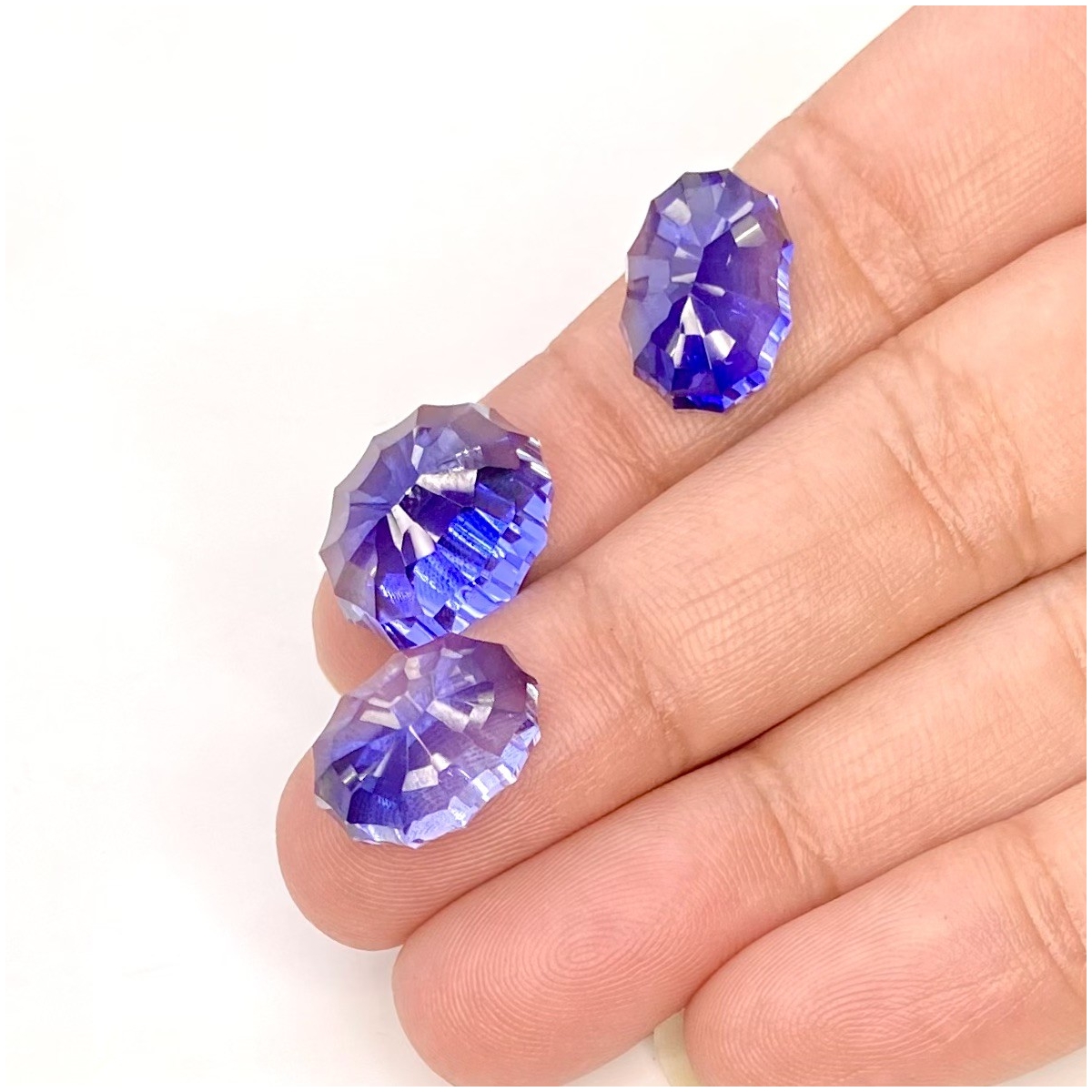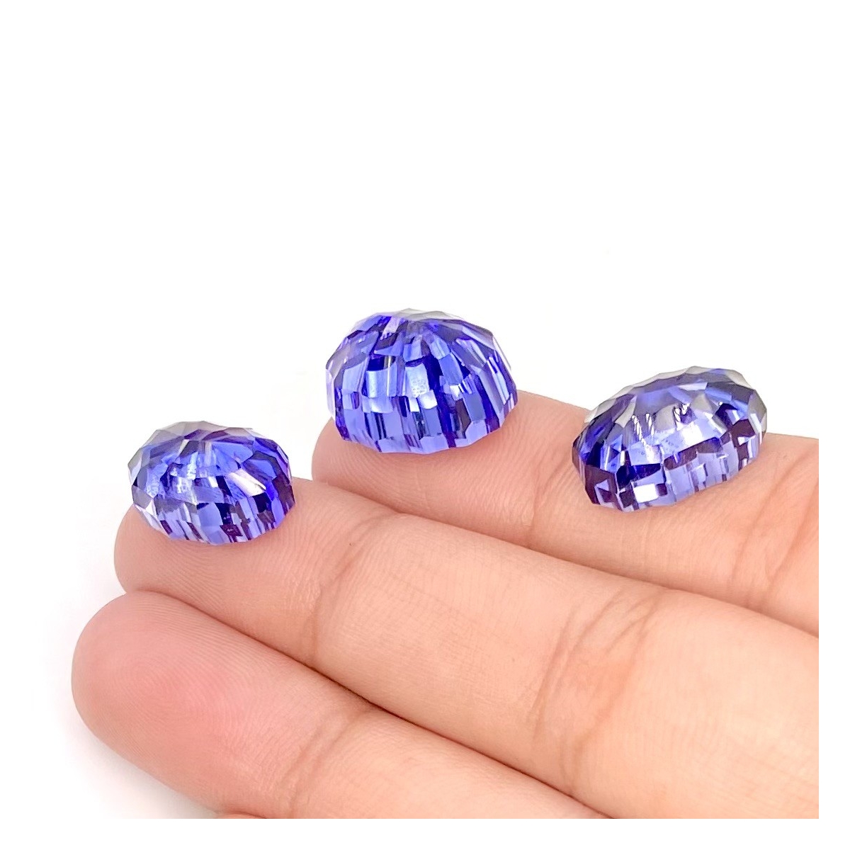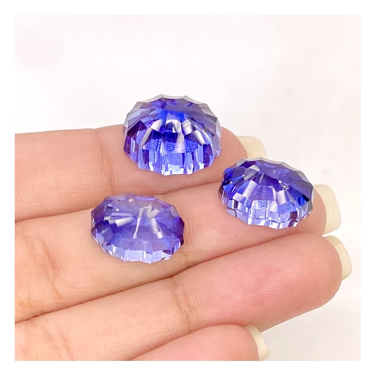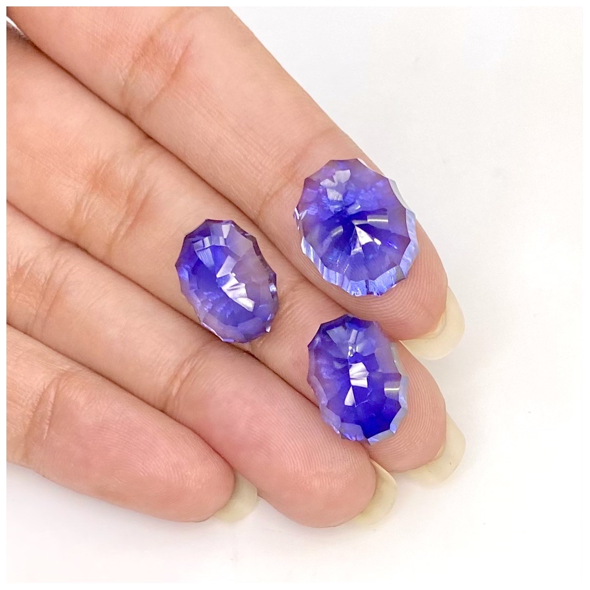 Buy This "AAA" Grade 15x12-14x10mm Concave Cut Oval Shape Created Lab Blue Sapphire (Lab Grown) Matched Cabochons Set. You Will Receive 3 Pcs. With a Total Weight of 38.25 Carat. This Lab Blue Sapphire Stone is Originated From Russia and Masterfully Handcrafted by The Experienced Artisans of Jaipur (India).