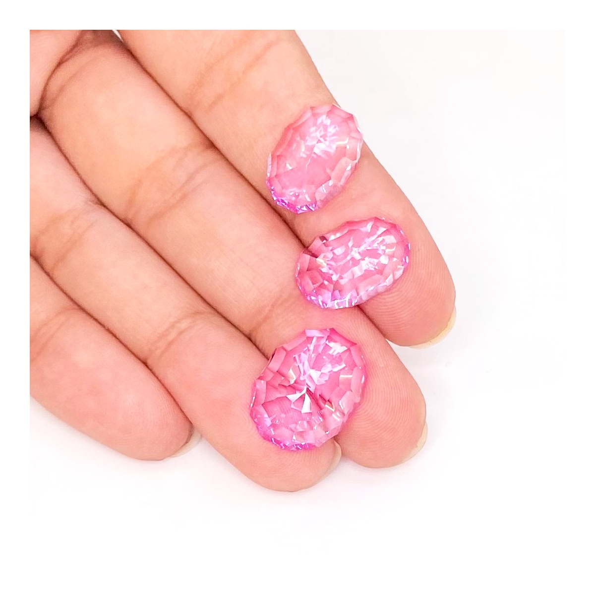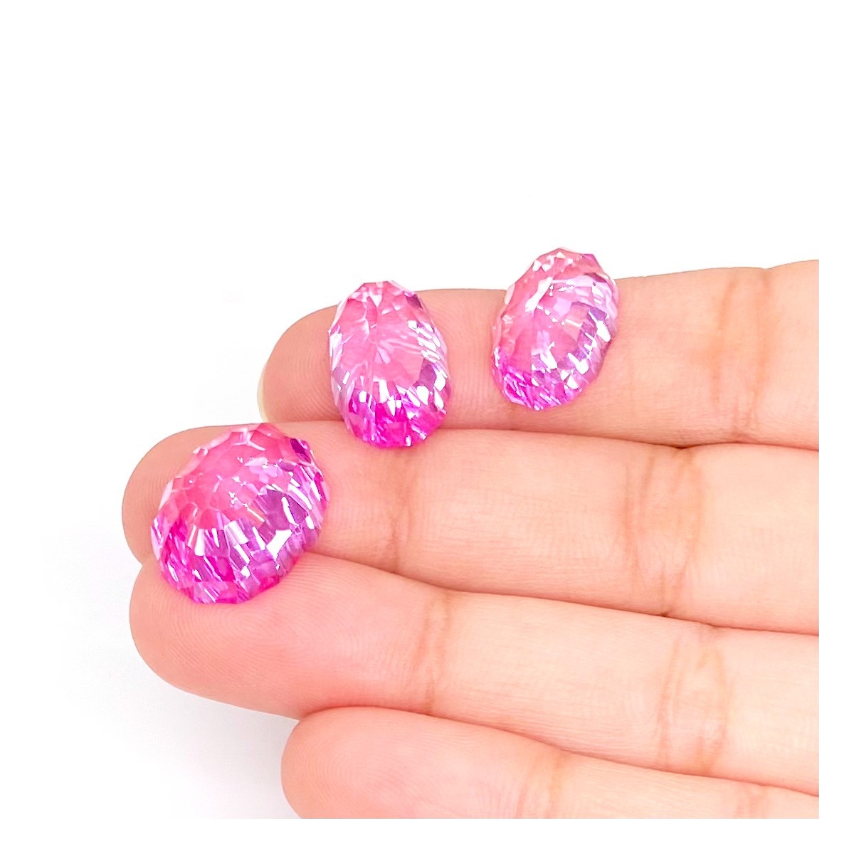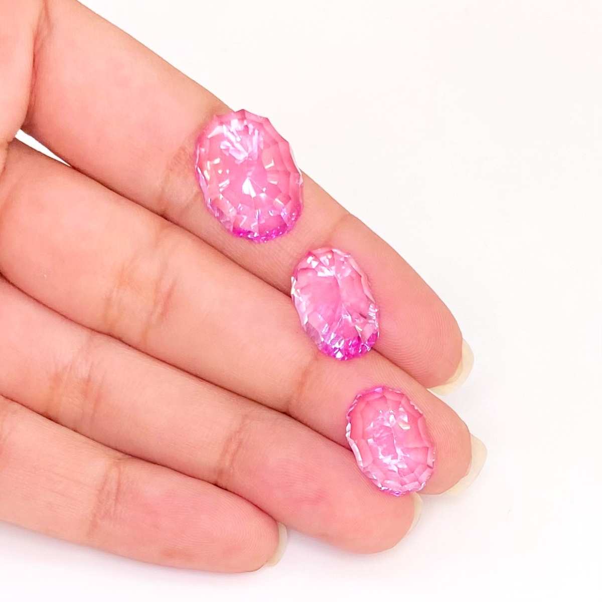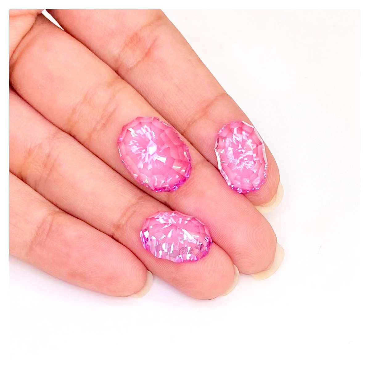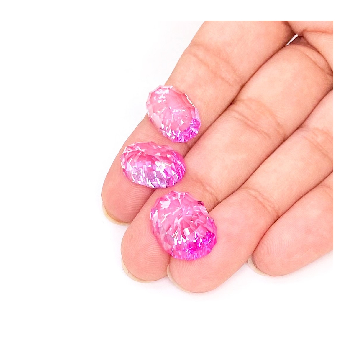 Buy This "AAA" Grade 16.5x12.5mm Concave Cut Oval Shape Created Lab Pink Sapphire (Lab Grown) Matched Cabochons Set. You Will Receive 3 Pcs. With a Total Weight of 33.60 Carat. This Lab Pink Sapphire Stone is Originated From Russia and Masterfully Handcrafted by The Experienced Artisans of Jaipur (India).