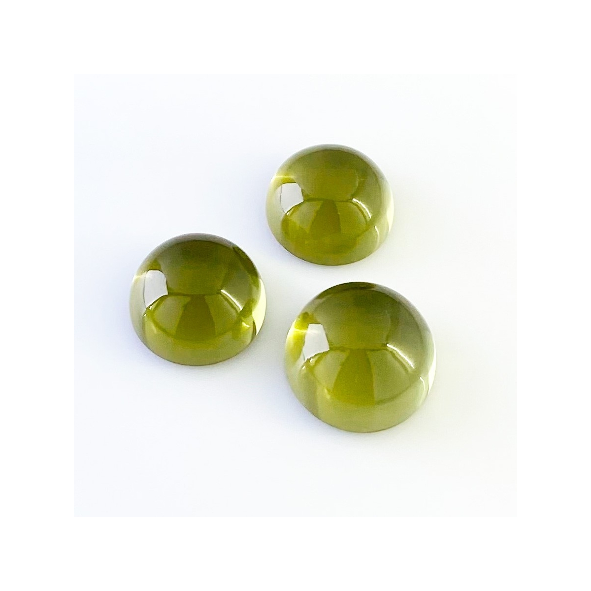 Buy This "AAA" Grade 16-17mm Smooth Round Shape Natural Olive Quartz (Heated) Matched Cabochons Set. You Will Receive 3 Pcs. With a Total Weight of 54.70 Cts.. This Olive Quartz Stone is Originated From Brazil and Masterfully Handcrafted by The Experienced Artisans of Jaipur (India).