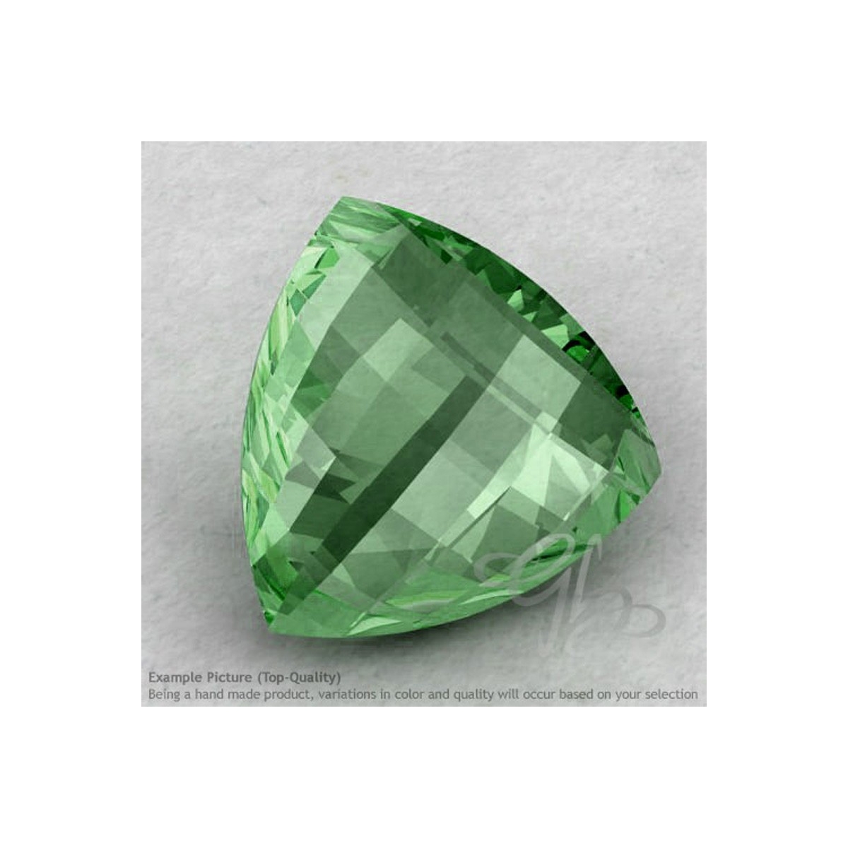 Green Amethyst Trillion Shape Calibrated Briolettes - This Trillion Shape Green Amethyst (Heated) Calibrated Briolette is originated from Brazil and Cut & Polished in Jaipur (India) - Sizes available from 7mm to 15mm