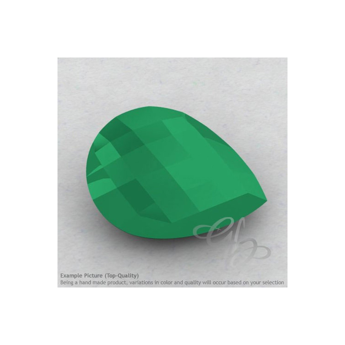 This Pear Shape Green Onyx (Heated) Calibrated Briolette is originated from India and Cut & Polished in Jaipur (India) - Sizes available from 8x5mm to 20x15mm