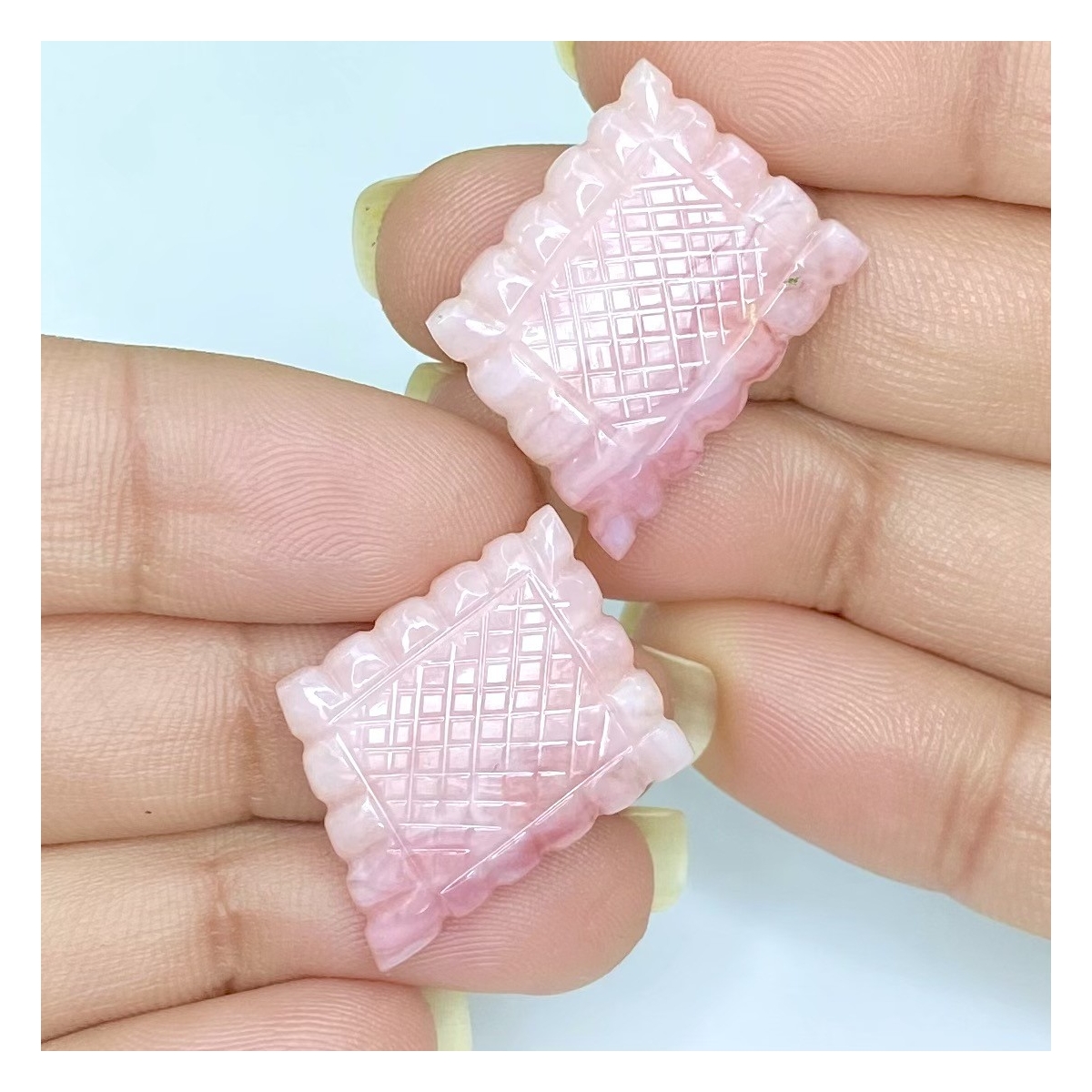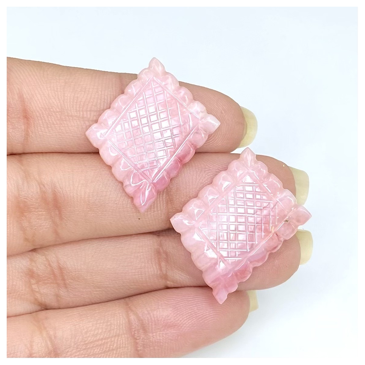 Buy This "AA+" Grade 21.5x16mm Carved Fancy Shape Natural Pink Opal (Un-Treated) Matched Gemstone Carvings Pair. You Will Receive 2 Pcs. With a Total Weight of 20.55 Cts.. This Pink Opal Stone is Originated From Australia and Masterfully Handcrafted by The Experienced Artisans of Jaipur (India).