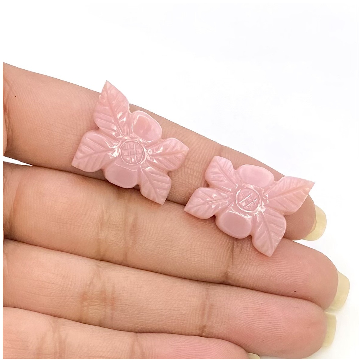 Buy This "AA+" Grade 20x17mm Carved Fancy Shape Natural Pink Opal (Un-Treated) Matched Gemstone Carvings Pair. You Will Receive 2 Pcs. With a Total Weight of 26.48 Cts.. This Pink Opal Stone is Originated From Australia and Masterfully Handcrafted by The Experienced Artisans of Jaipur (India).