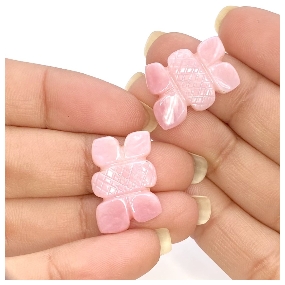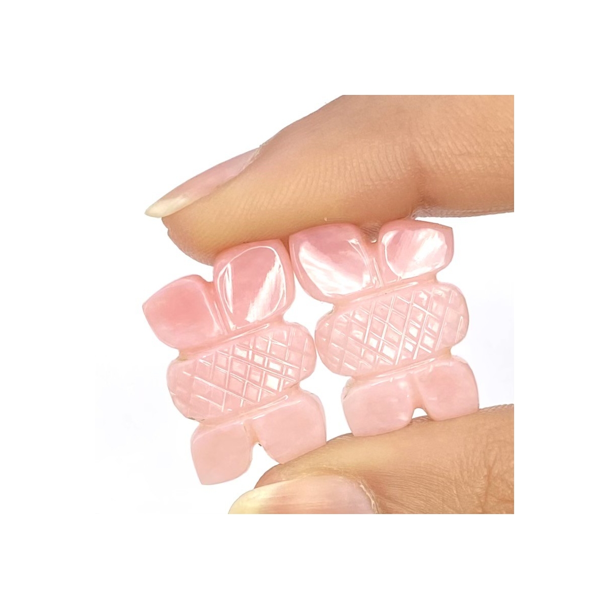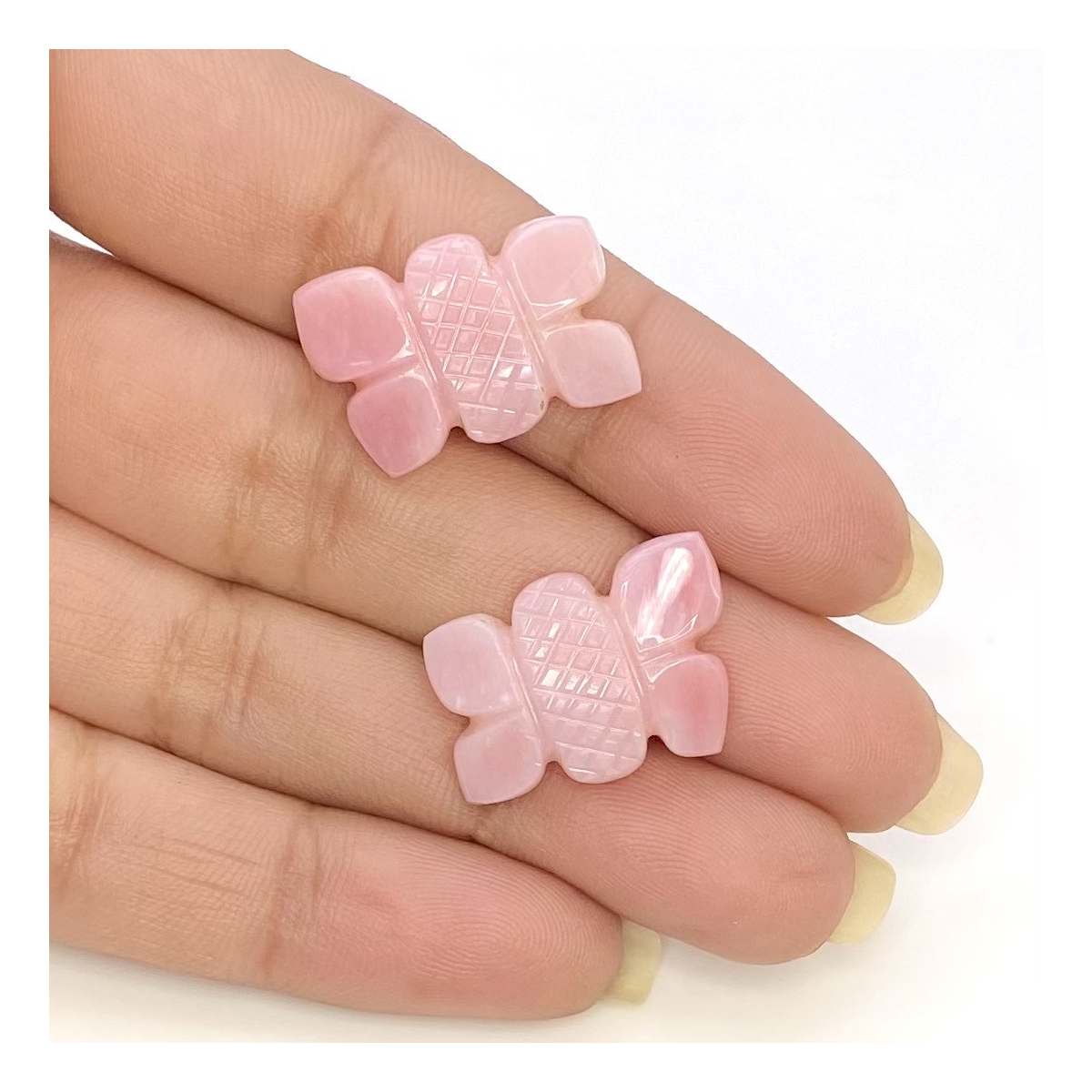 Buy This "AA+" Grade 20x14mm Carved Fancy Shape Natural Pink Opal (Un-Treated) Matched Gemstone Carvings Pair. You Will Receive 2 Pcs. With a Total Weight of 17.05 Cts.. This Pink Opal Stone is Originated From Australia and Masterfully Handcrafted by The Experienced Artisans of Jaipur (India).