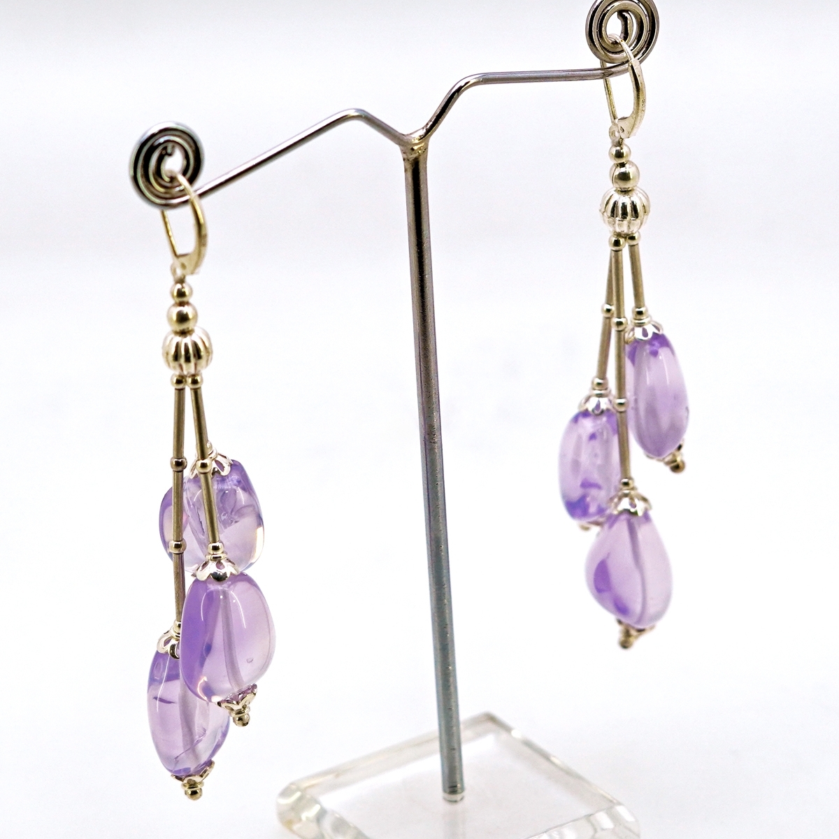 Lavender Quartz Smooth Nuggets Shape Gemstone Beads Earring - This Vintage Style Smooth Nuggets Shape Gemstone Beads Earring is Made With Rhodium Polished 925 Sterling Silver