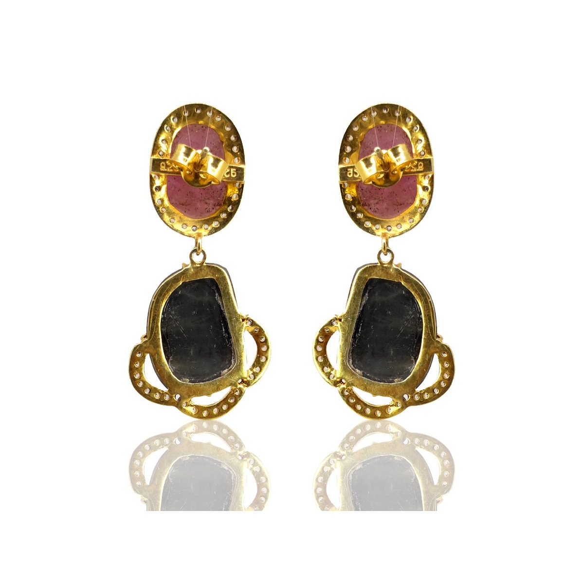 This Vintage Style Yellow Gold & Black Rhodium Polished 925 Sterling Silver Earring is set with Irregular Shape Multi Sapphire and Diamond White CZ.