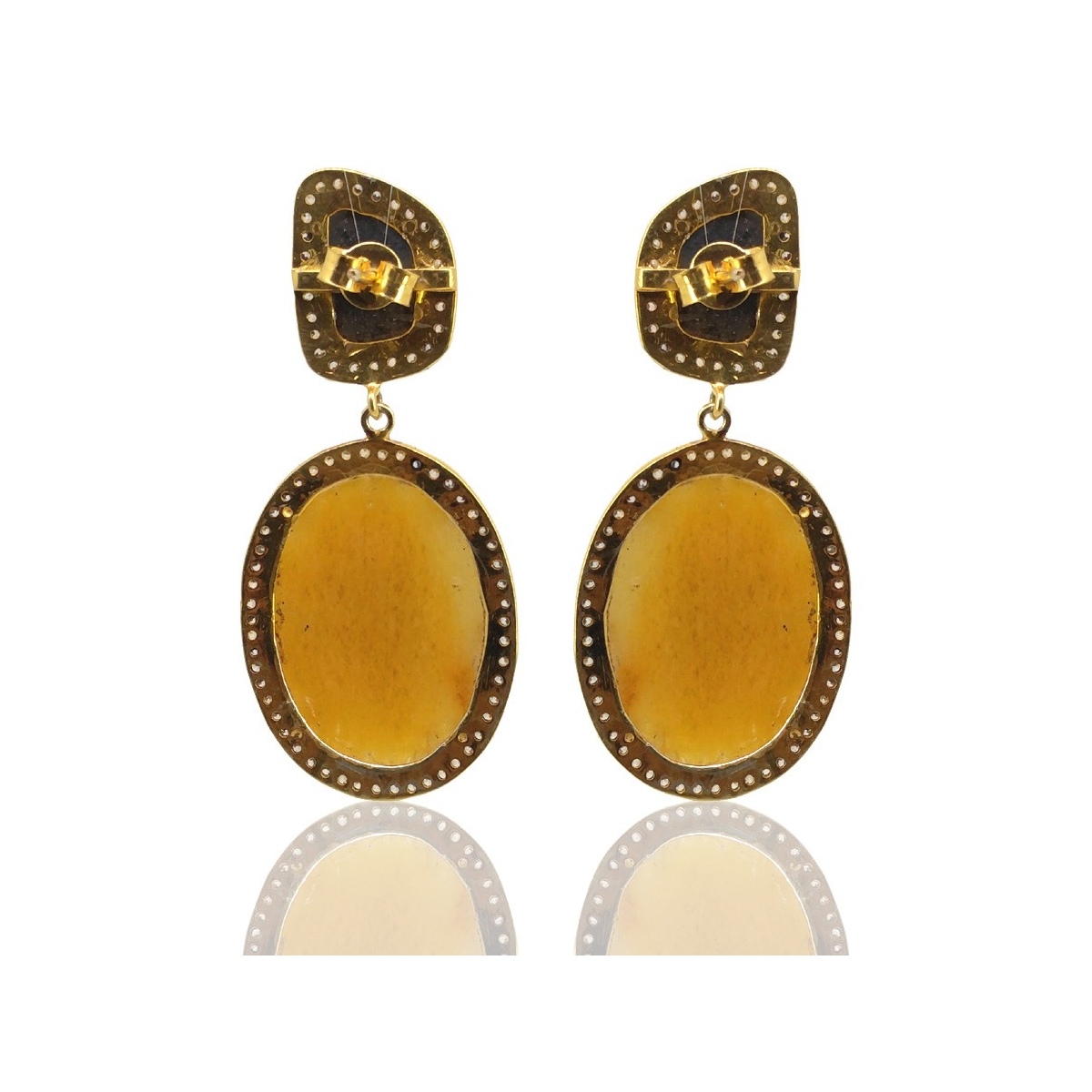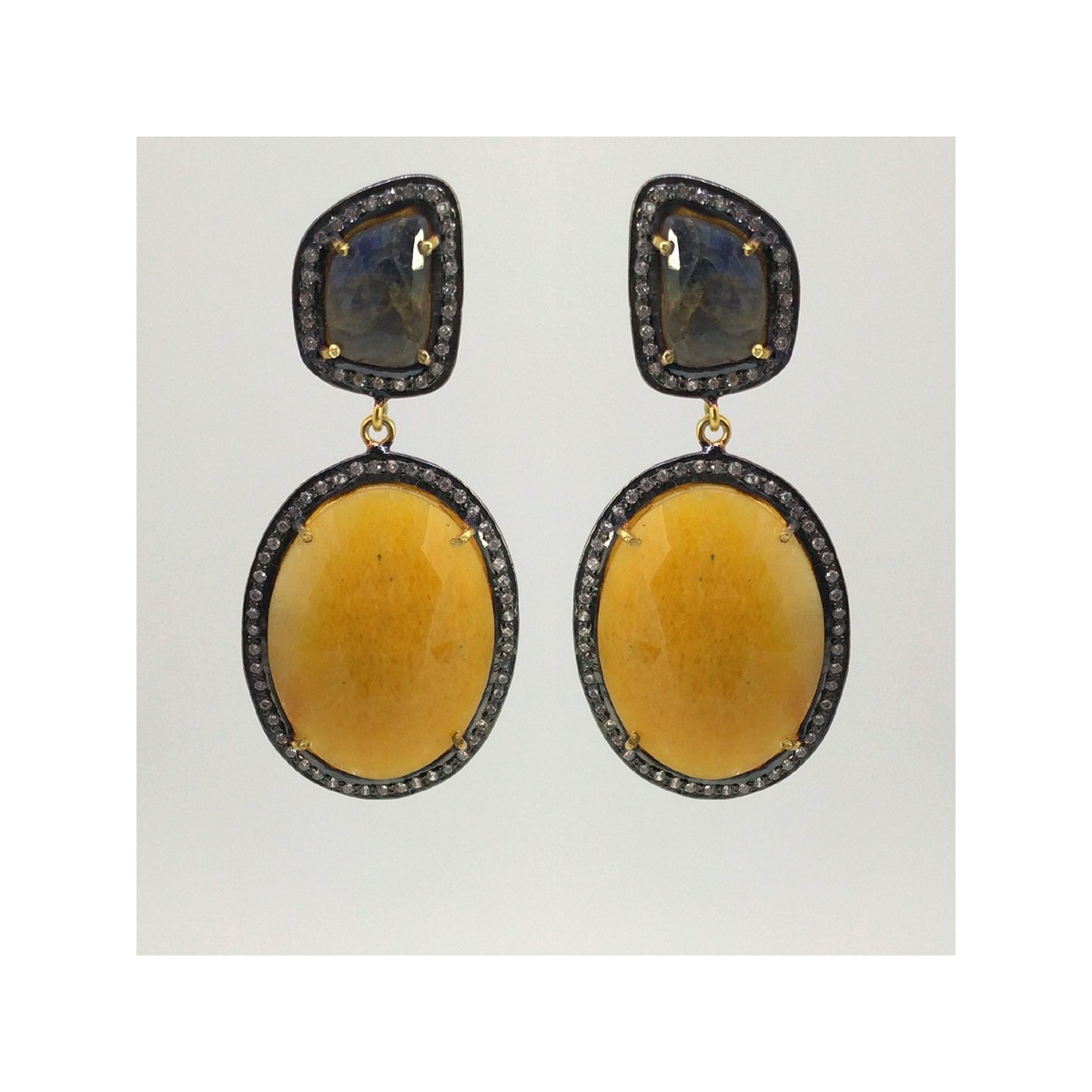 Multi Sapphire and Diamond White CZ 925 Sterling Silver Earring - This Vintage Style Yellow Gold & Black Rhodium Polished 925 Sterling Silver Earring is set with Mixed Shapes Shape Multi Sapphire and Diamond White CZ.