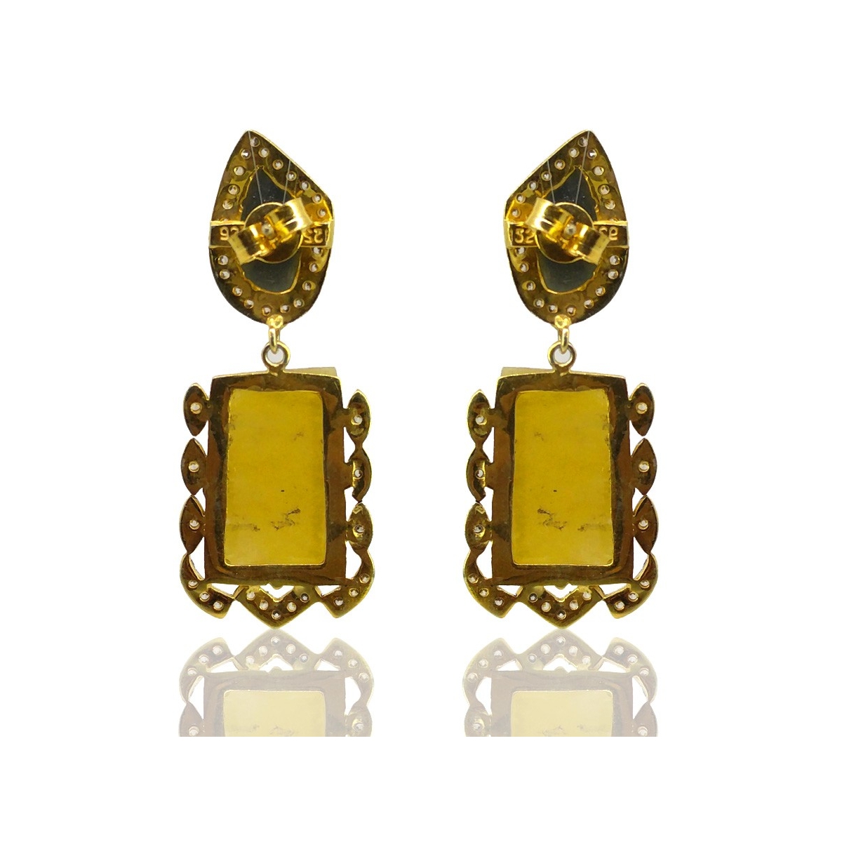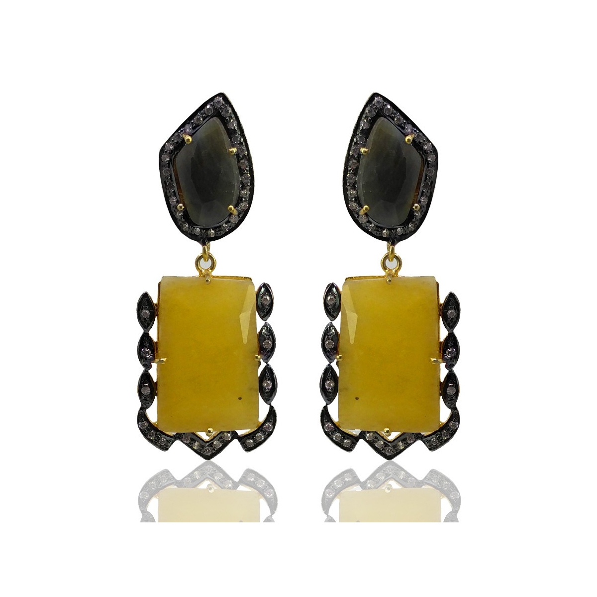 Multi Sapphire and Diamond White CZ 925 Sterling Silver Earring - This Vintage Style Yellow Gold & Black Rhodium Polished 925 Sterling Silver Earring is set with Mixed Shapes Shape Multi Sapphire and Diamond White CZ.