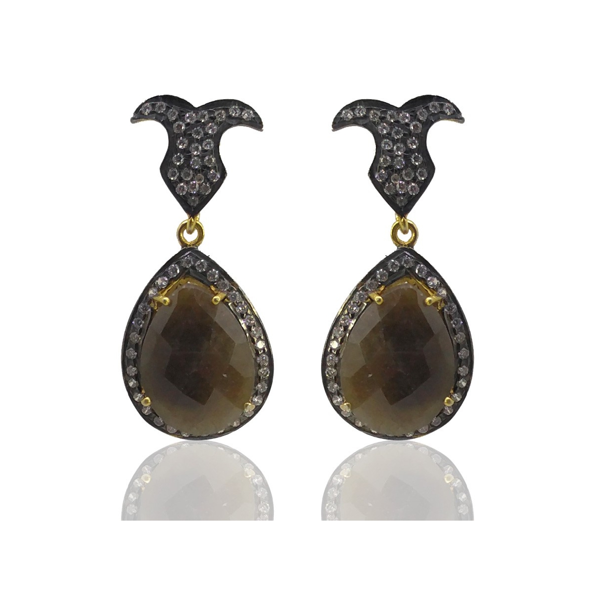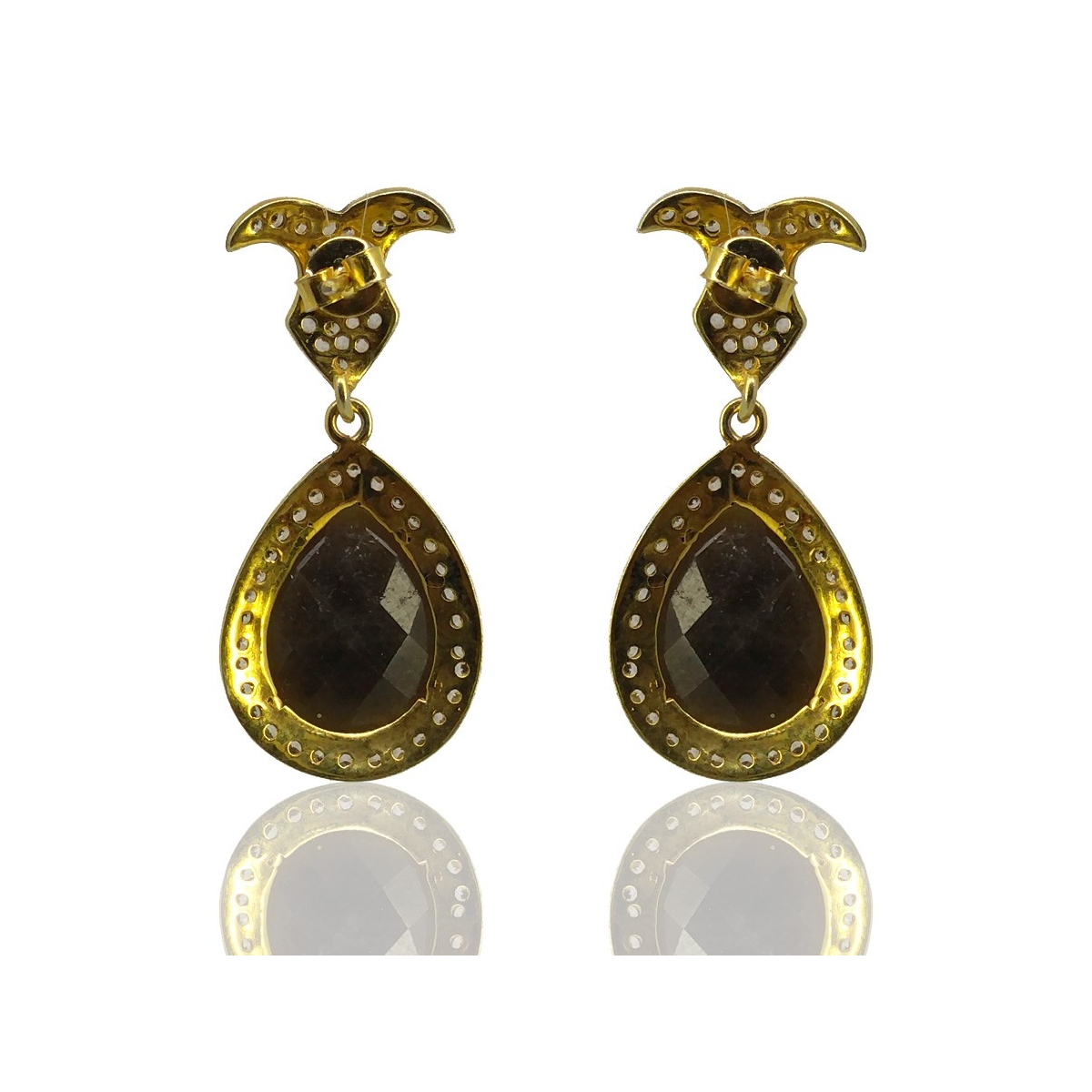 Sapphire and Diamond White CZ 925 Sterling Silver Earring - This Vintage Style Yellow Gold & Black Rhodium Polished 925 Sterling Silver Earring is set with Pear Shape Sapphire and Diamond White CZ.