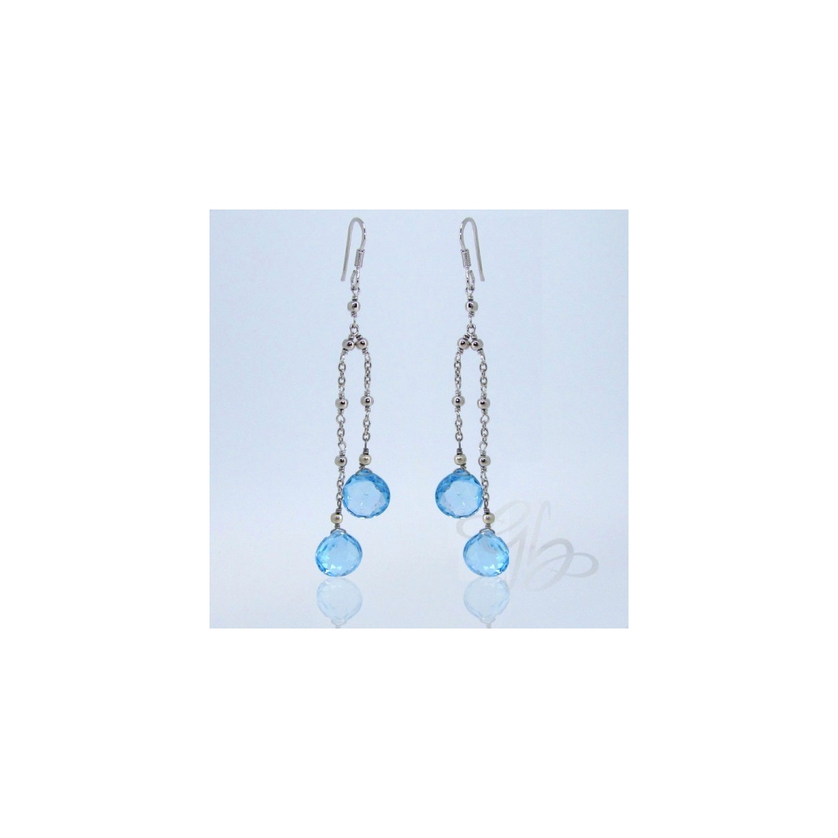 Sky - Blue Topaz 925 Sterling Silver Earrings - This Contemporary Style White Gold and Polished 925 Silver Earrings is set with Heart Shaped Sky-Blue Topaz.