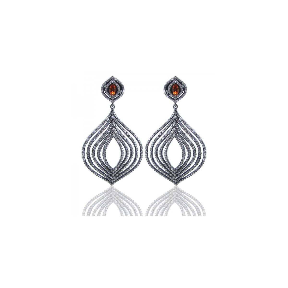 Spessartite Garnet and Diamond White CZ 925 Sterling Silver Earrings - This Contemporary Style and Black Rhodium Polished 925 Silver Earrings is set with Marquise Shaped Spessartite Garnet and Diamond White CZ