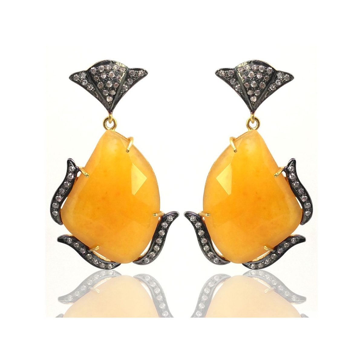 Yellow Sapphire and Diamond White CZ 925 Sterling Silver Earring - This Vintage Style Yellow Gold & Black Rhodium Polished 925 Sterling Silver Earring is set with Irregular Shape Yellow Sapphire and Diamond White CZ.