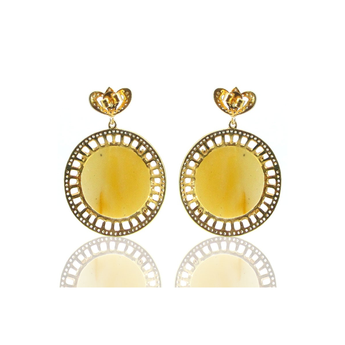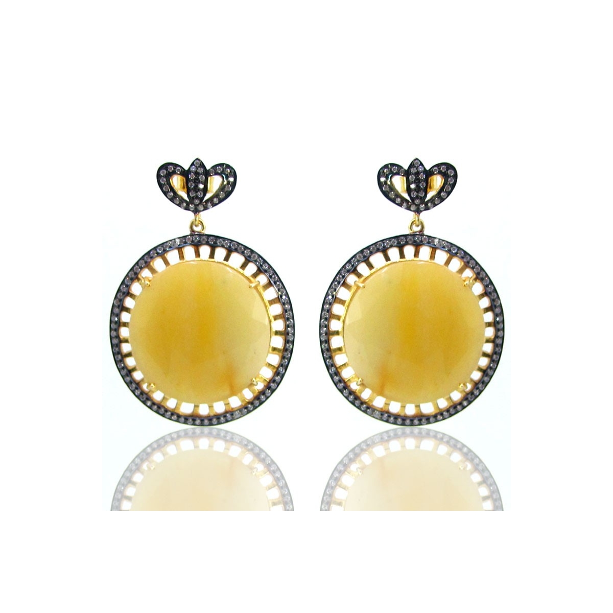 Yellow Sapphire and Diamond White CZ 925 Sterling Silver Earrings - This Vintage Style Yellow Gold and Black Rhodium Polished 925 Silver Earrings is set with Round Shaped Yellow Sapphire and Diamond White CZ.