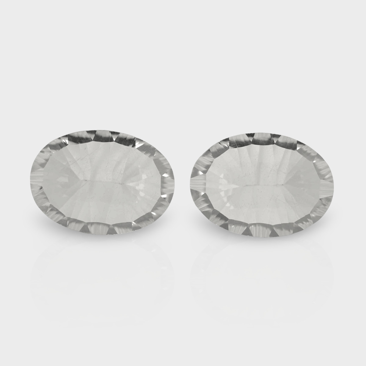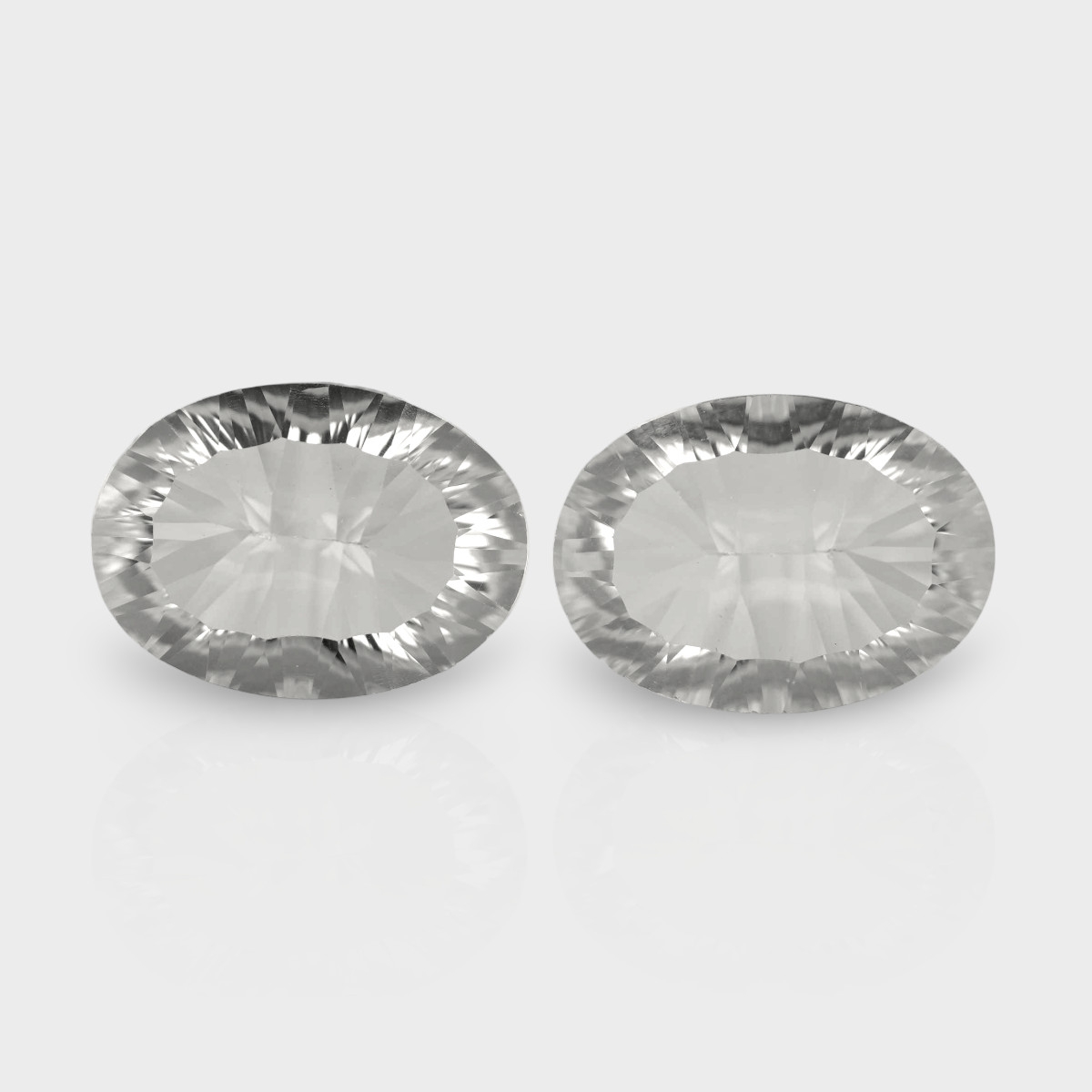 Buy This "AAA" Grade 18x13mm Concave Cut Oval Shape Natural Crystal Quartz (Un-Treated) Matched Gemstones Pair. You Will Receive 2 Pc. With a Total Weight of 19.44 Cts.. This Crystal Quartz Stone is Originated From Brazil and Masterfully Handcrafted by The Experienced Artisans of Jaipur (India).