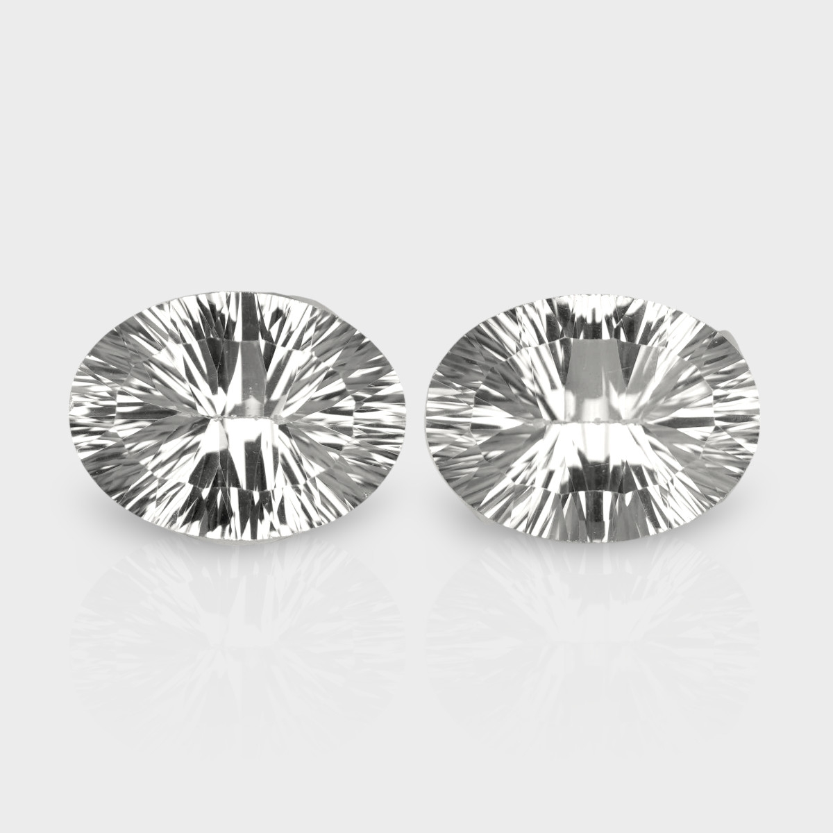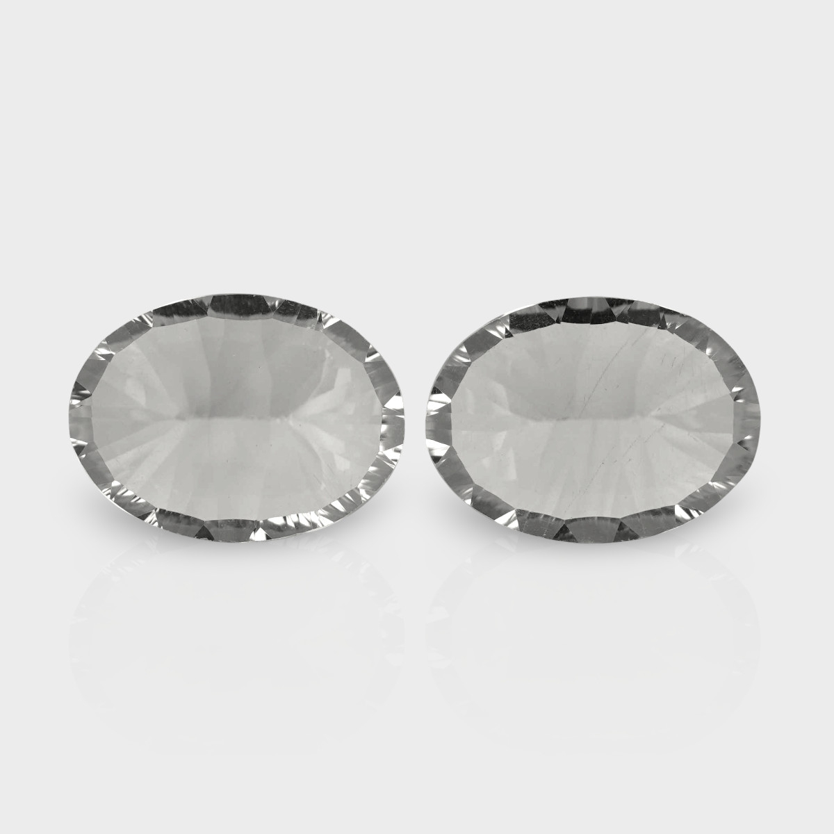 Buy This "AAA" Grade 16x12mm Concave Cut Oval Shape Natural Crystal Quartz (Un-Treated) Matched Gemstones Pair. You Will Receive 2 Pcs. With a Total Weight of 16.98 Cts.. This Crystal Quartz Stone is Originated From Brazil and Masterfully Handcrafted by The Experienced Artisans of Jaipur (India).