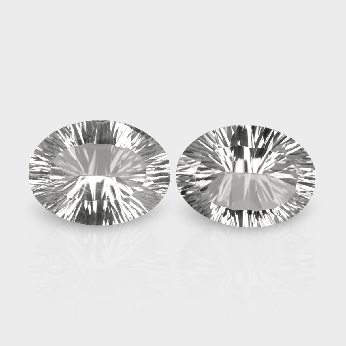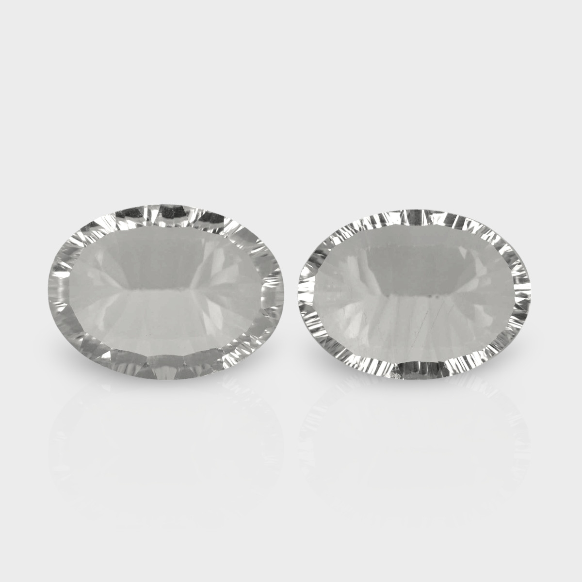 Buy This "AAA" Grade 16x12mm Concave Cut Oval Shape Natural Crystal Quartz (Un-Treated) Matched Gemstones Pair. You Will Receive 2 Pcs. With a Total Weight of 16.47 Cts.. This Crystal Quartz Stone is Originated From Brazil and Masterfully Handcrafted by The Experienced Artisans of Jaipur (India).