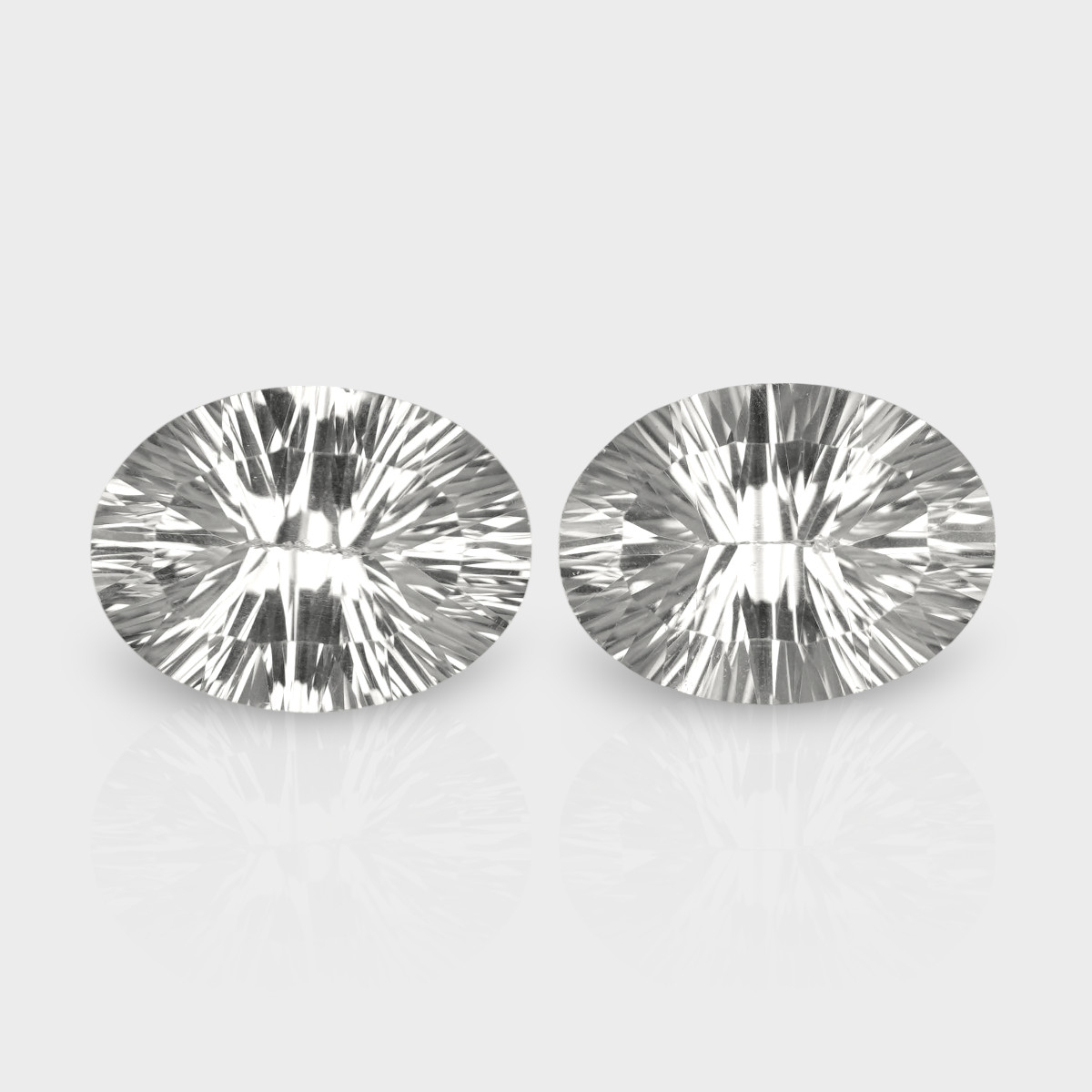 Buy This "AAA" Grade 16x12mm Concave Cut Oval Shape Natural Crystal Quartz (Un-Treated) Matched Gemstones Pair. You Will Receive 2 Pcs. With a Total Weight of 17.42 Cts.. This Crystal Quartz Stone is Originated From Brazil and Masterfully Handcrafted by The Experienced Artisans of Jaipur (India).
