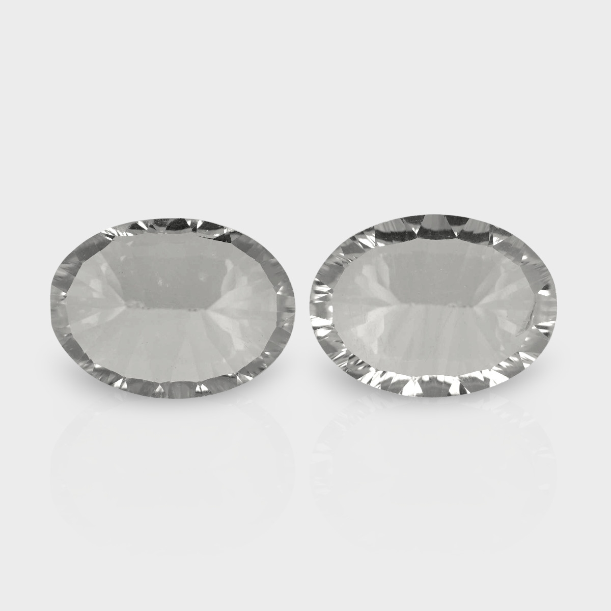 Buy This "AAA" Grade 16x12mm Concave Cut Oval Shape Natural Crystal Quartz (Un-Treated) Matched Gemstones Pair. You Will Receive 2 Pcs. With a Total Weight of 16.53 Cts.. This Crystal Quartz Stone is Originated From Brazil and Masterfully Handcrafted by The Experienced Artisans of Jaipur (India).