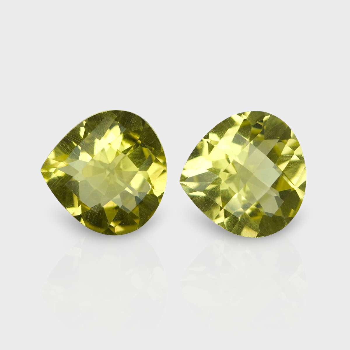 Buy This "AAA" Grade 15mm Checkerboard Heart Shape Natural Lemon Quartz (Heated) Matched Gemstones Pair. You Will Receive 2 Pcs. With a Total Weight of 22.26 Cts.. This Lemon Quartz Stone is Originated From Brazil and Masterfully Handcrafted by The Experienced Artisans of Jaipur (India).
