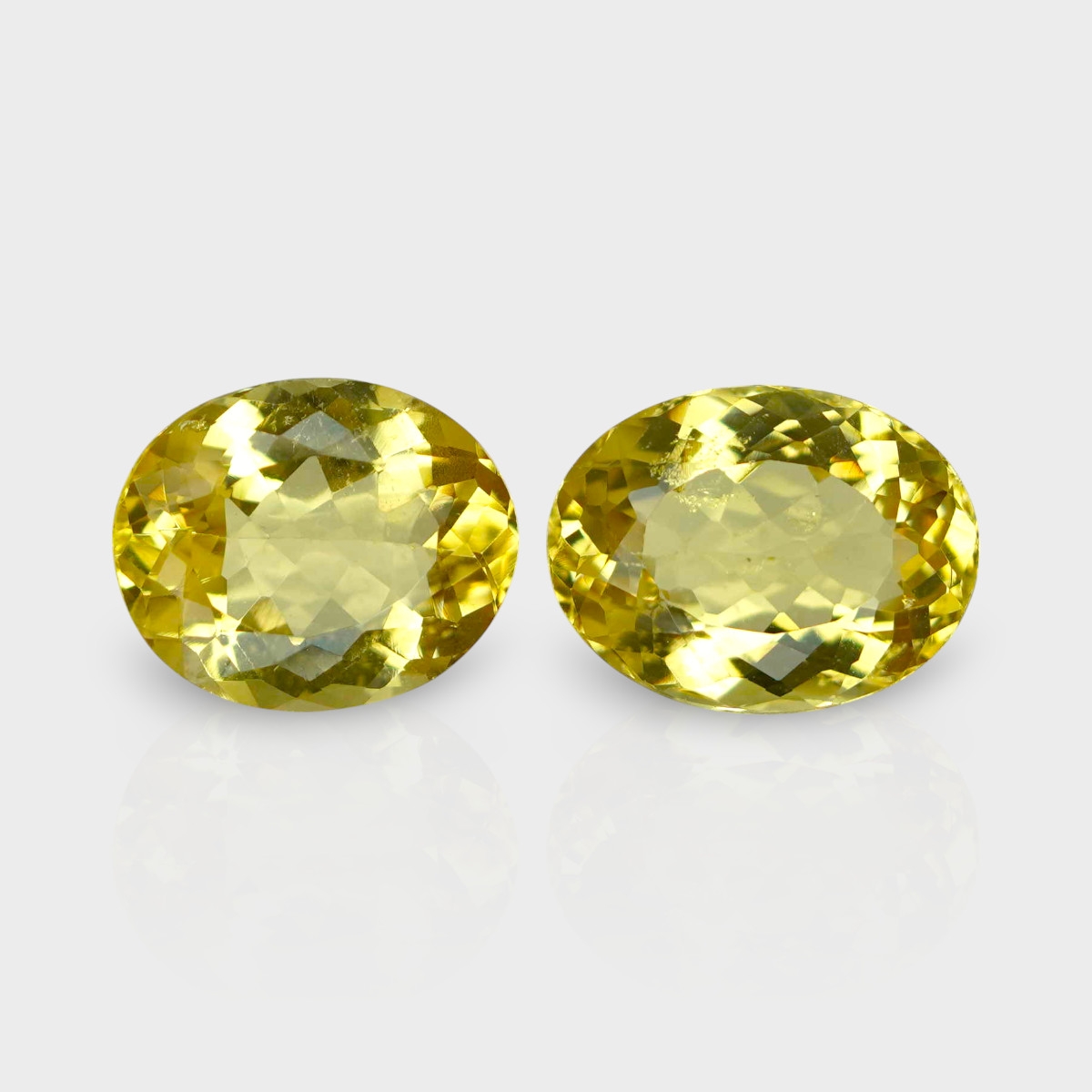 Buy This "AAA" Grade 13x10mm Faceted Oval Shape Natural Yellow Beryl (Heated) Matched Gemstones Pair. You Will Receive 2 Pcs. With a Total Weight of 9.66 Cts.. This Yellow Beryl Stone is Originated From Brazil and Masterfully Handcrafted by The Experienced Artisans of Jaipur (India).