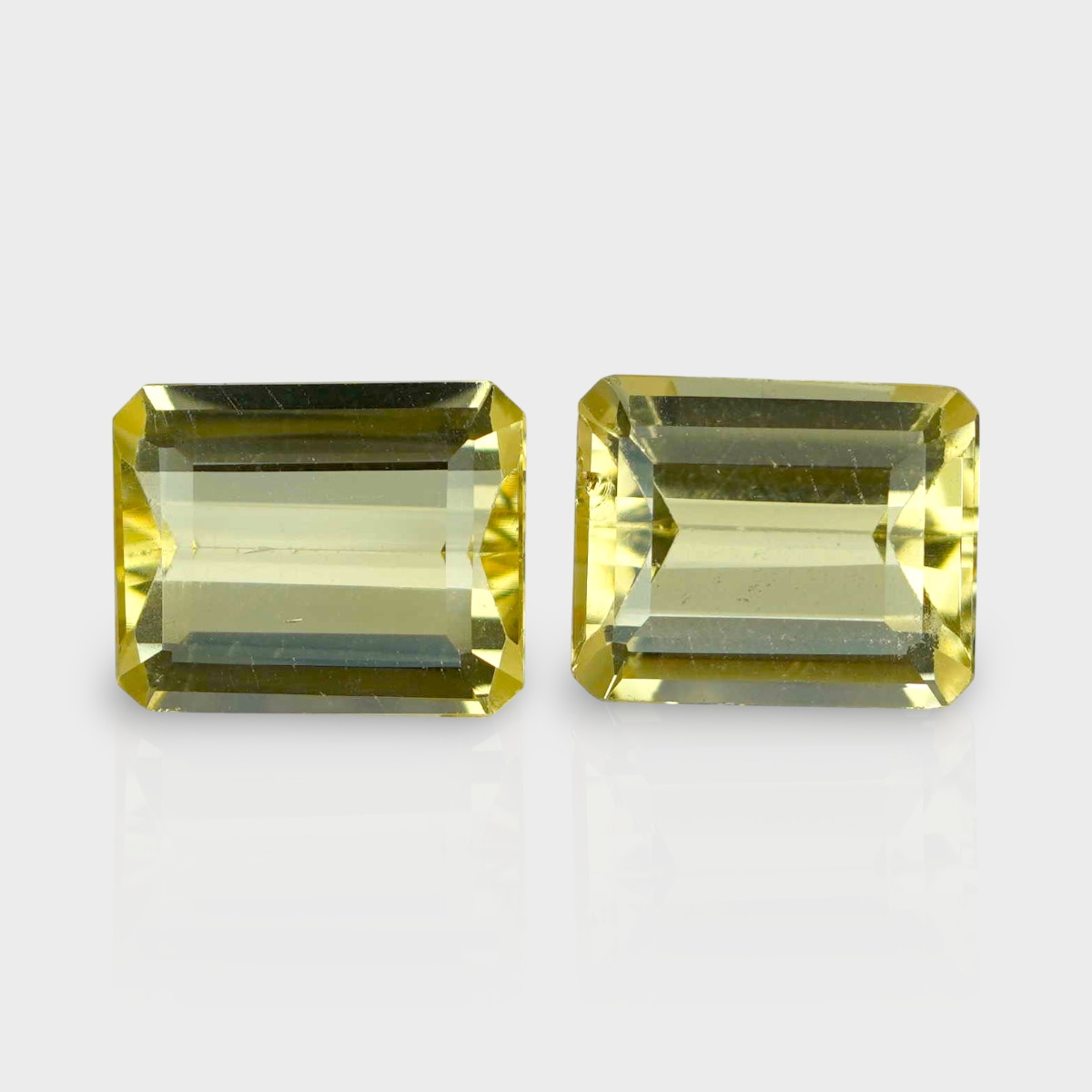 Buy This "AAA" Grade 11x9mm Step Cut Octagon Shape Natural Yellow Beryl (Heated) Matched Gemstones Pair. You Will Receive 2 Pcs. With a Total Weight of 7.62 Cts.. This Yellow Beryl Stone is Originated From Brazil and Masterfully Handcrafted by The Experienced Artisans of Jaipur (India).