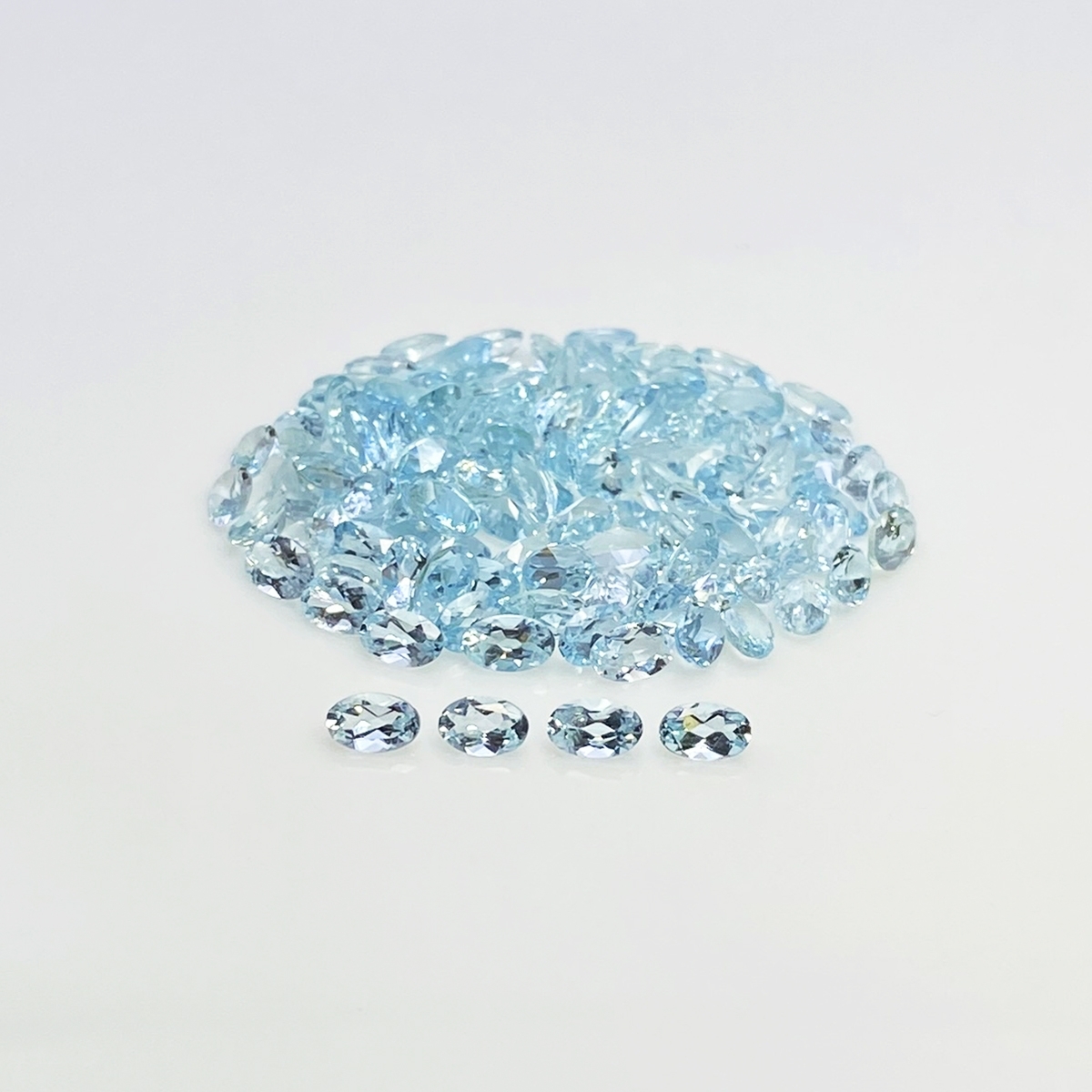 25 Cts. Aquamarine 5x3mm Faceted Oval Shape A+ Grade Gemstones Parcel - Total 128 Pcs.