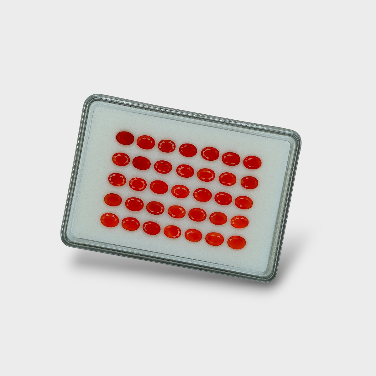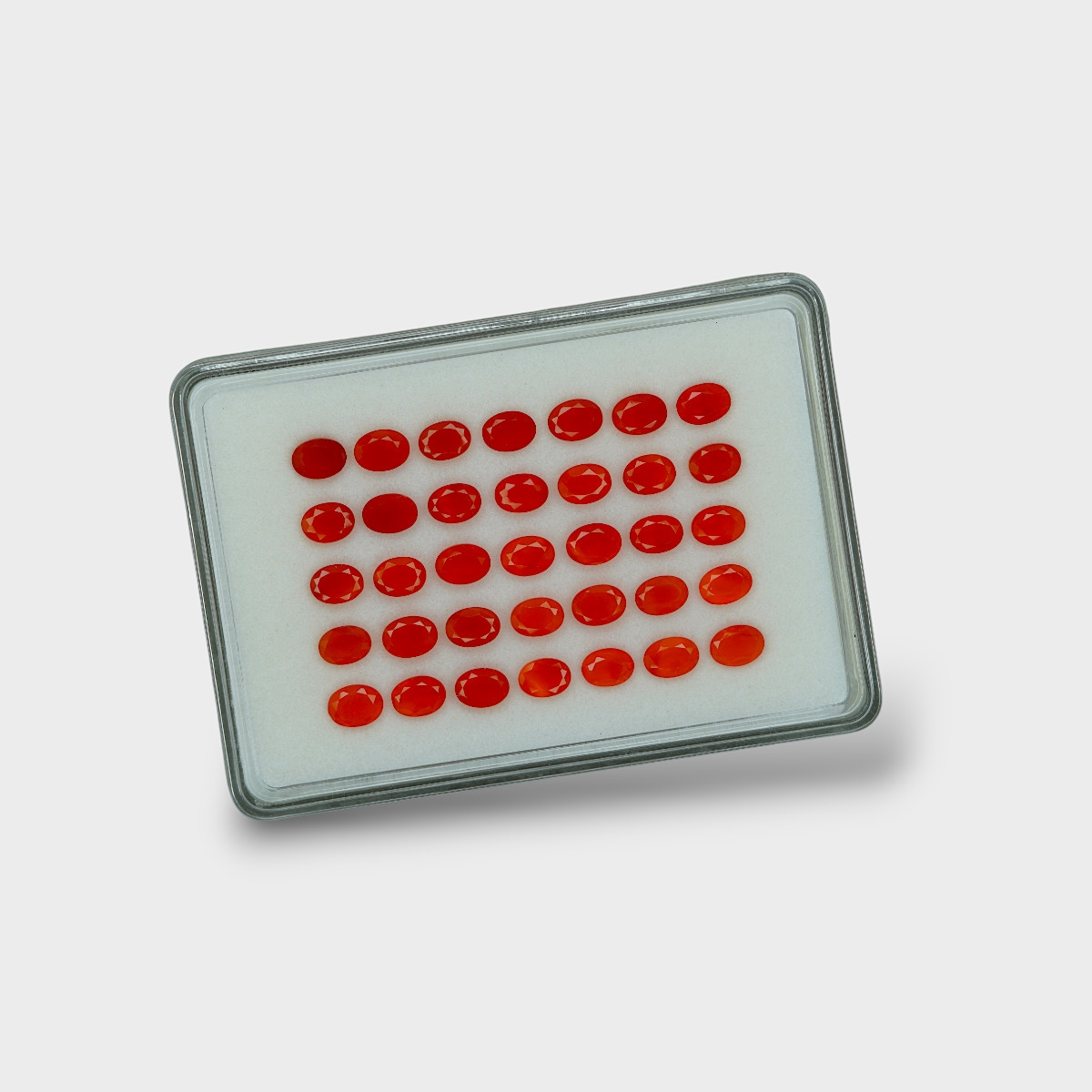 Buy This "AAA" Grade 7x5mm Faceted Oval Shape Natural Carnelian (Un-Treated) Gemstones Parcel. You Will Receive 35 Pc. With a Total Weight of 26.74 Cts.. This Carnelian Stone is Originated From India and Masterfully Handcrafted by The Experienced Artisans of Jaipur (India).