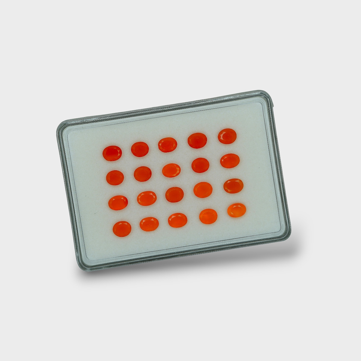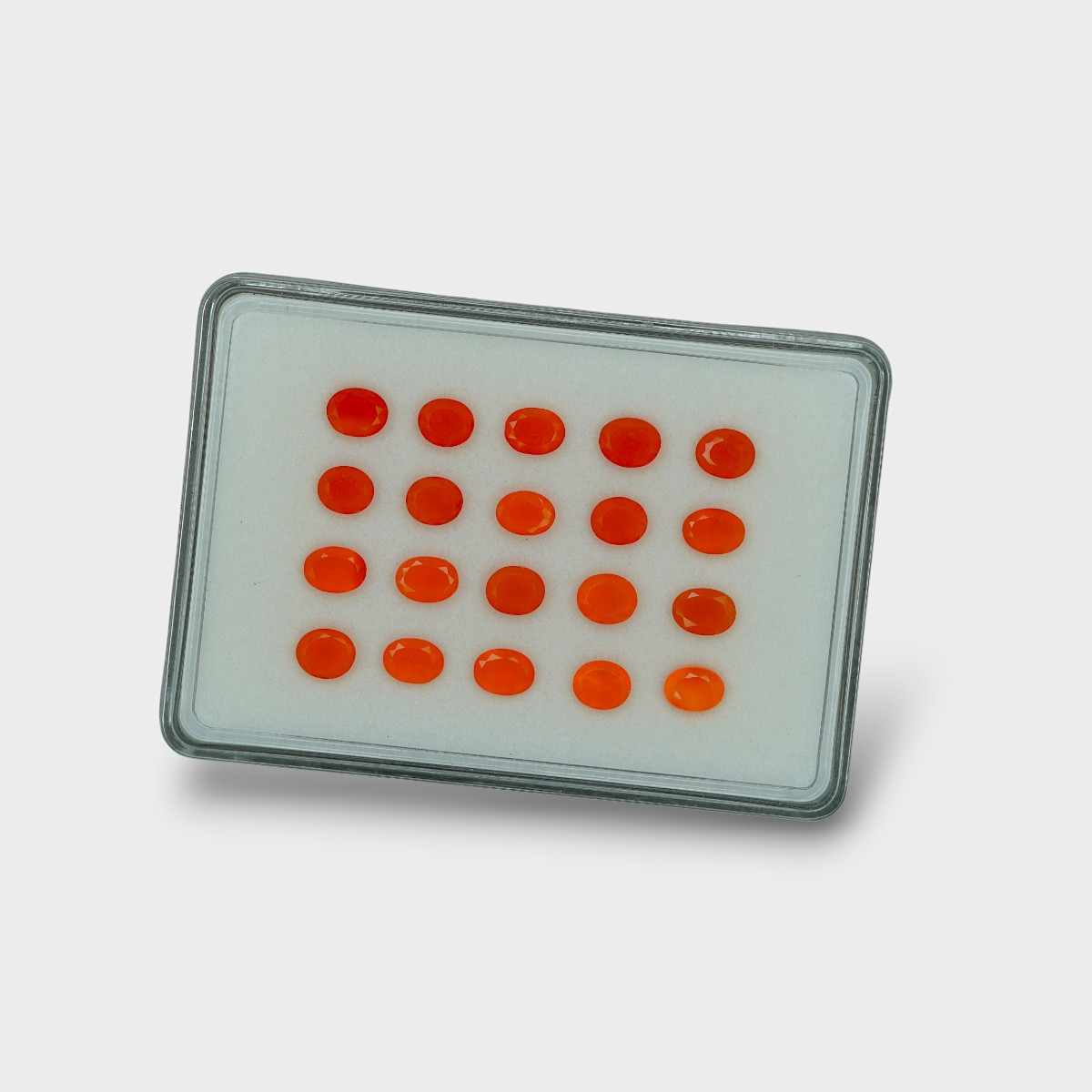 Buy This "AAA" Grade 7x6mm Faceted Oval Shape Natural Carnelian (Un-Treated) Gemstones Parcel. You Will Receive 20 Pc. With a Total Weight of 19.83 Cts.. This Carnelian Stone is Originated From India and Masterfully Handcrafted by The Experienced Artisans of Jaipur (India).