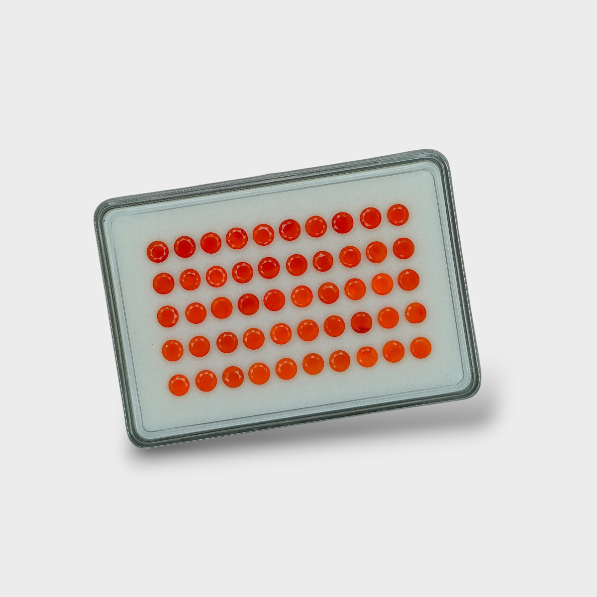 Buy This "AAA" Grade 5mm Faceted Round Shape Natural Carnelian (Un-Treated) Gemstones Parcel. You Will Receive 50 Pc. With a Total Weight of 22.67 Cts.. This Carnelian Stone is Originated From India and Masterfully Handcrafted by The Experienced Artisans of Jaipur (India).