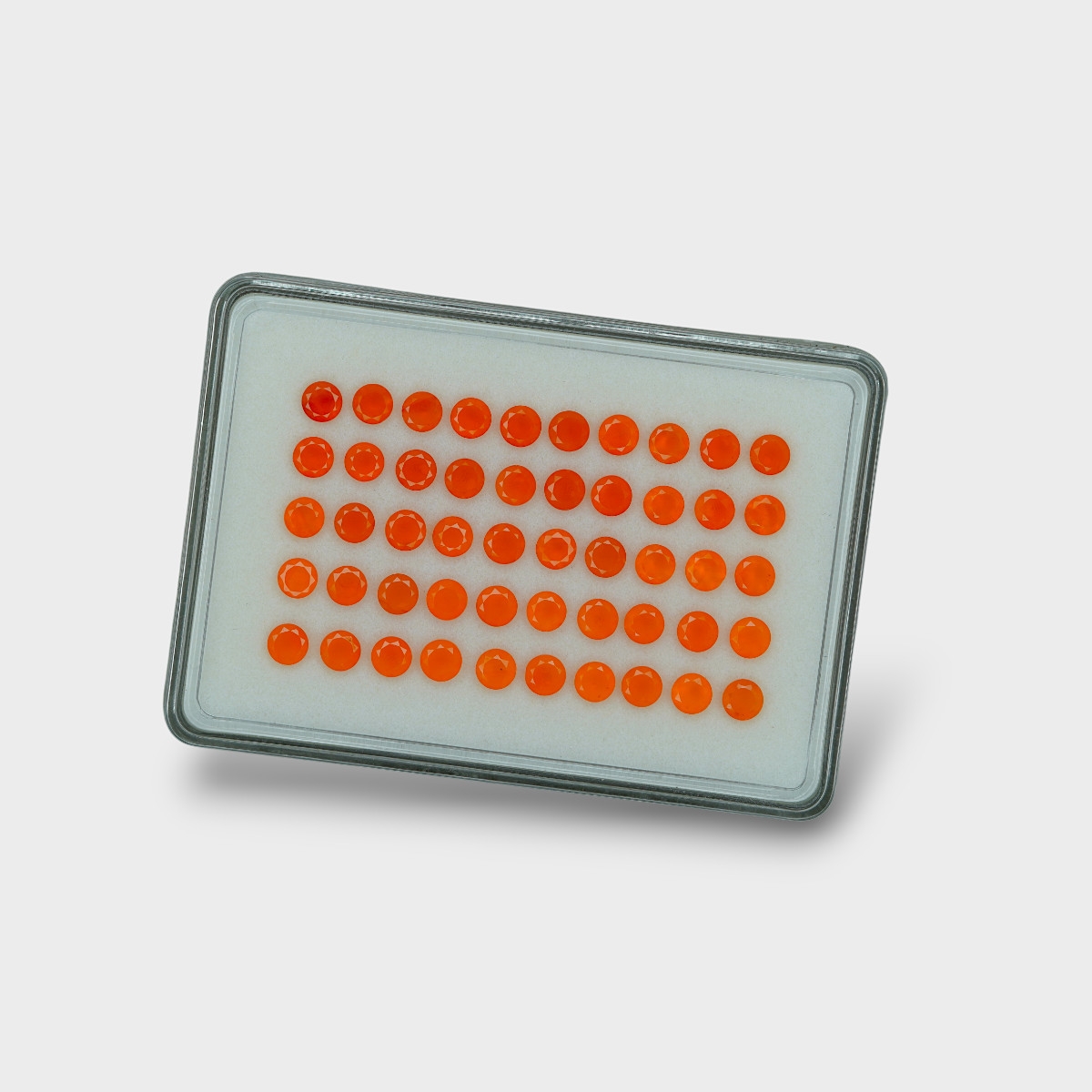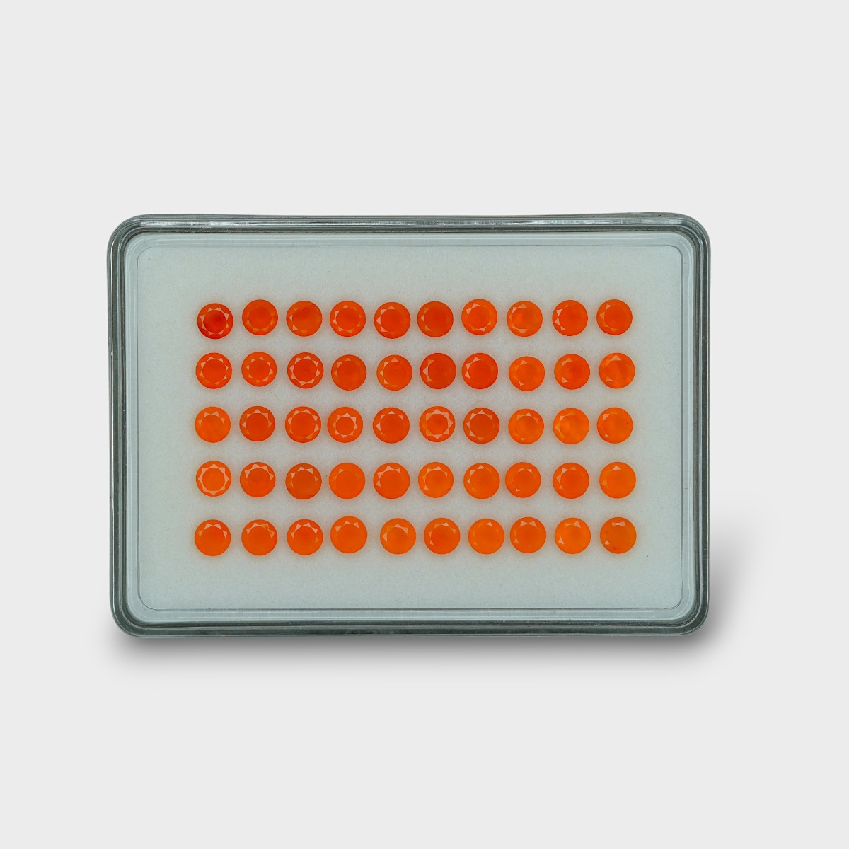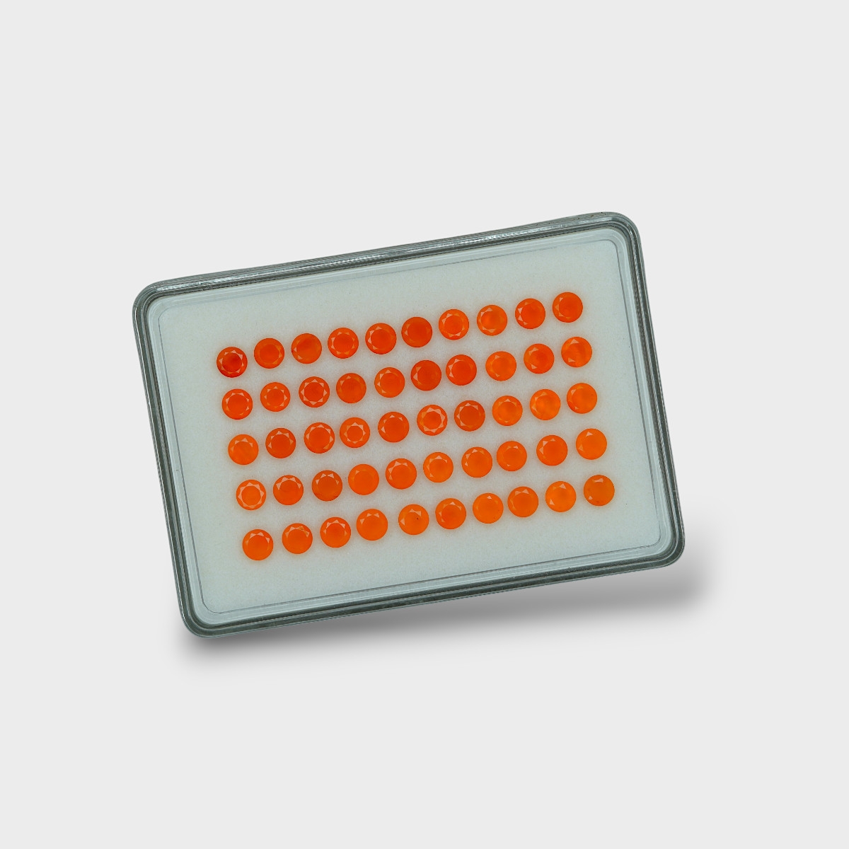 Buy This "AAA" Grade 5mm Faceted Round Shape Natural Carnelian (Un-Treated) Gemstones Parcel. You Will Receive 50 Pc. With a Total Weight of 22.73 Cts.. This Carnelian Stone is Originated From India and Masterfully Handcrafted by The Experienced Artisans of Jaipur (India).