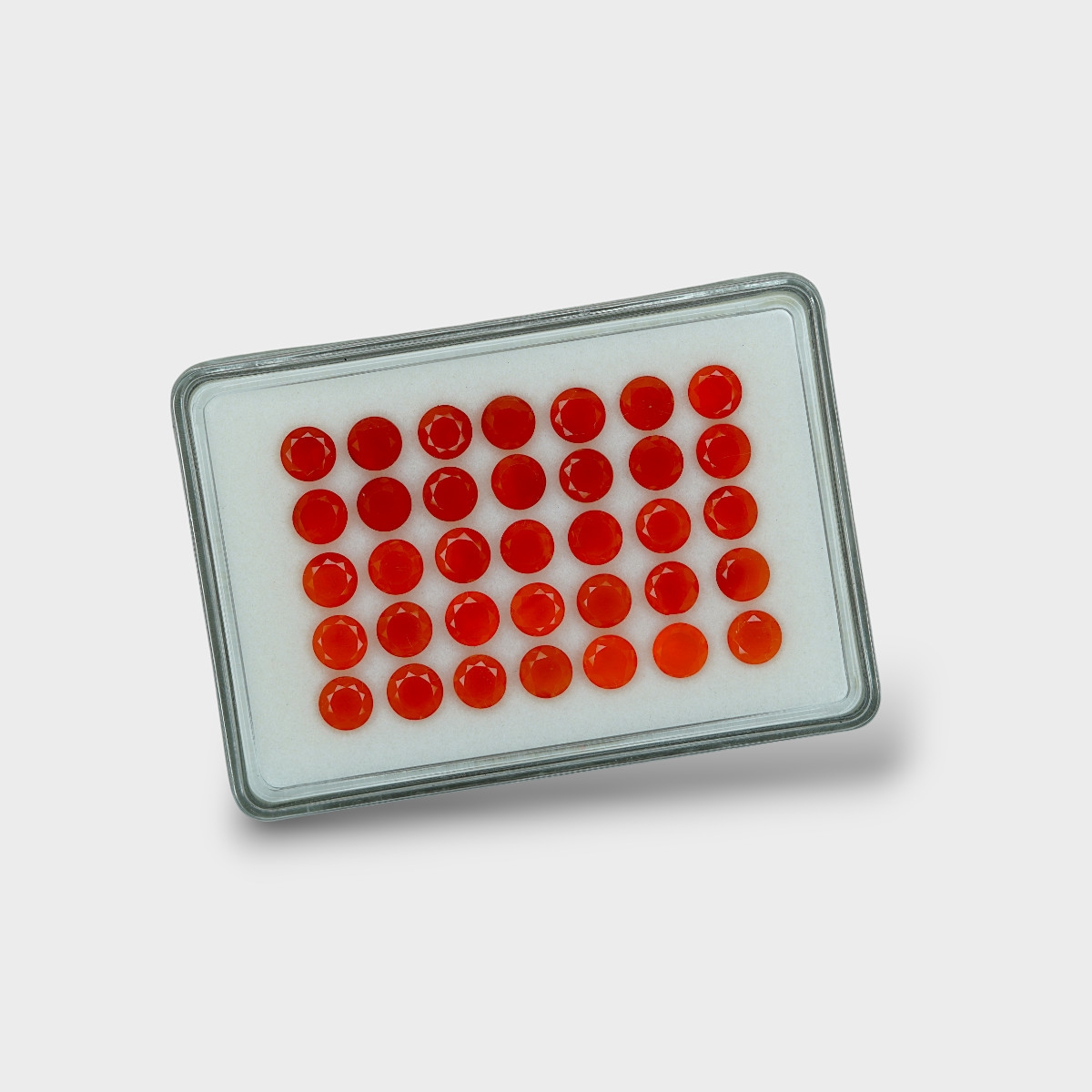 Buy This "AAA" Grade 7mm Faceted Round Shape Natural Carnelian (Un-Treated) Gemstones Parcel. You Will Receive 35 Pc. With a Total Weight of 44.80 Cts.. This Carnelian Stone is Originated From India and Masterfully Handcrafted by The Experienced Artisans of Jaipur (India).