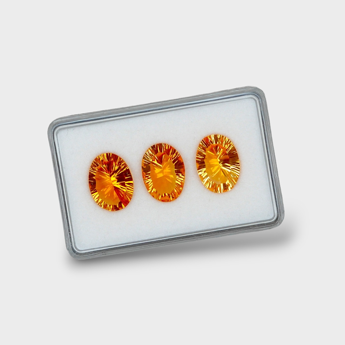 18.08 Cts. Citrine 15x11mm Concave Cut Oval Shape AAA Grade Gemstones Parcel - Total 3 Pc.