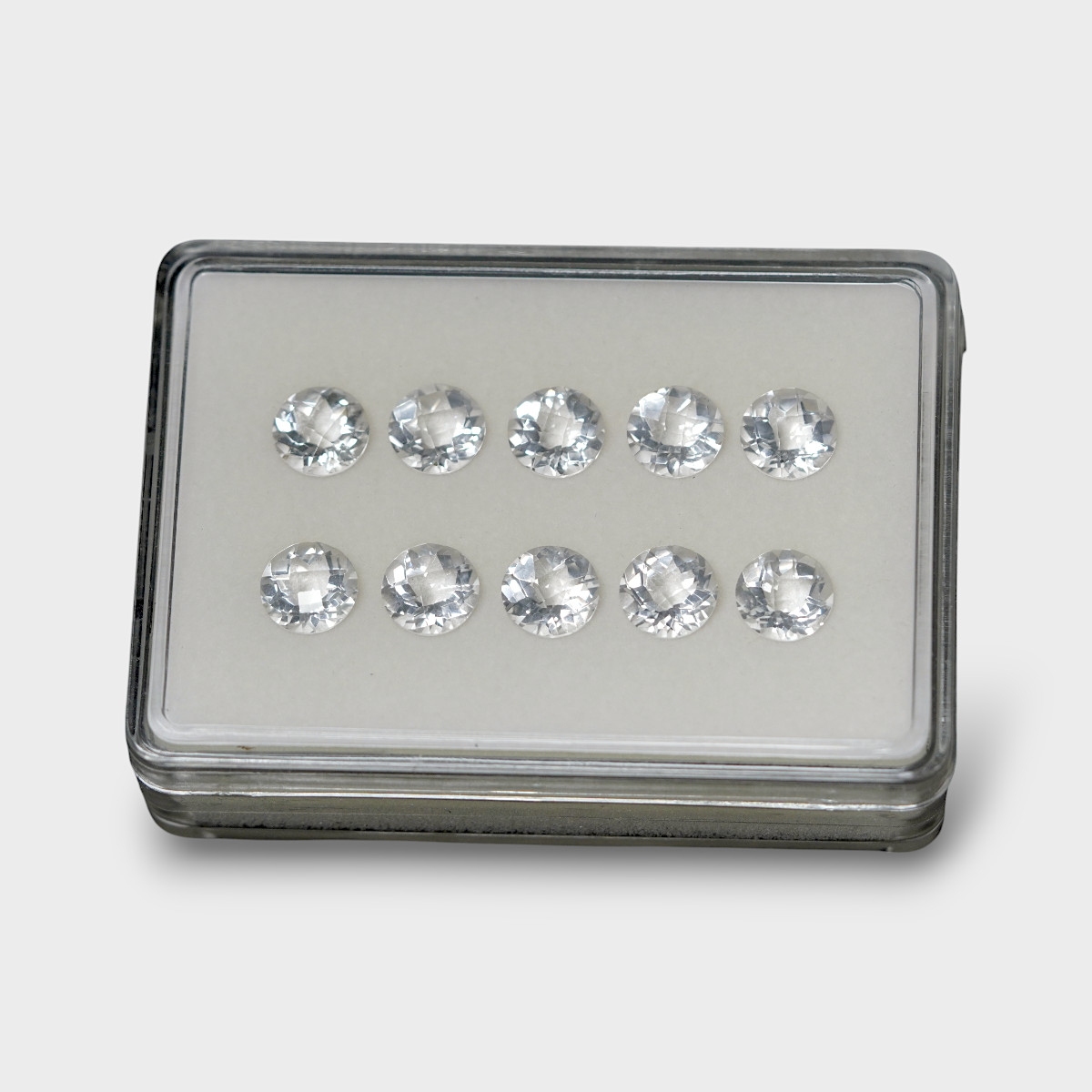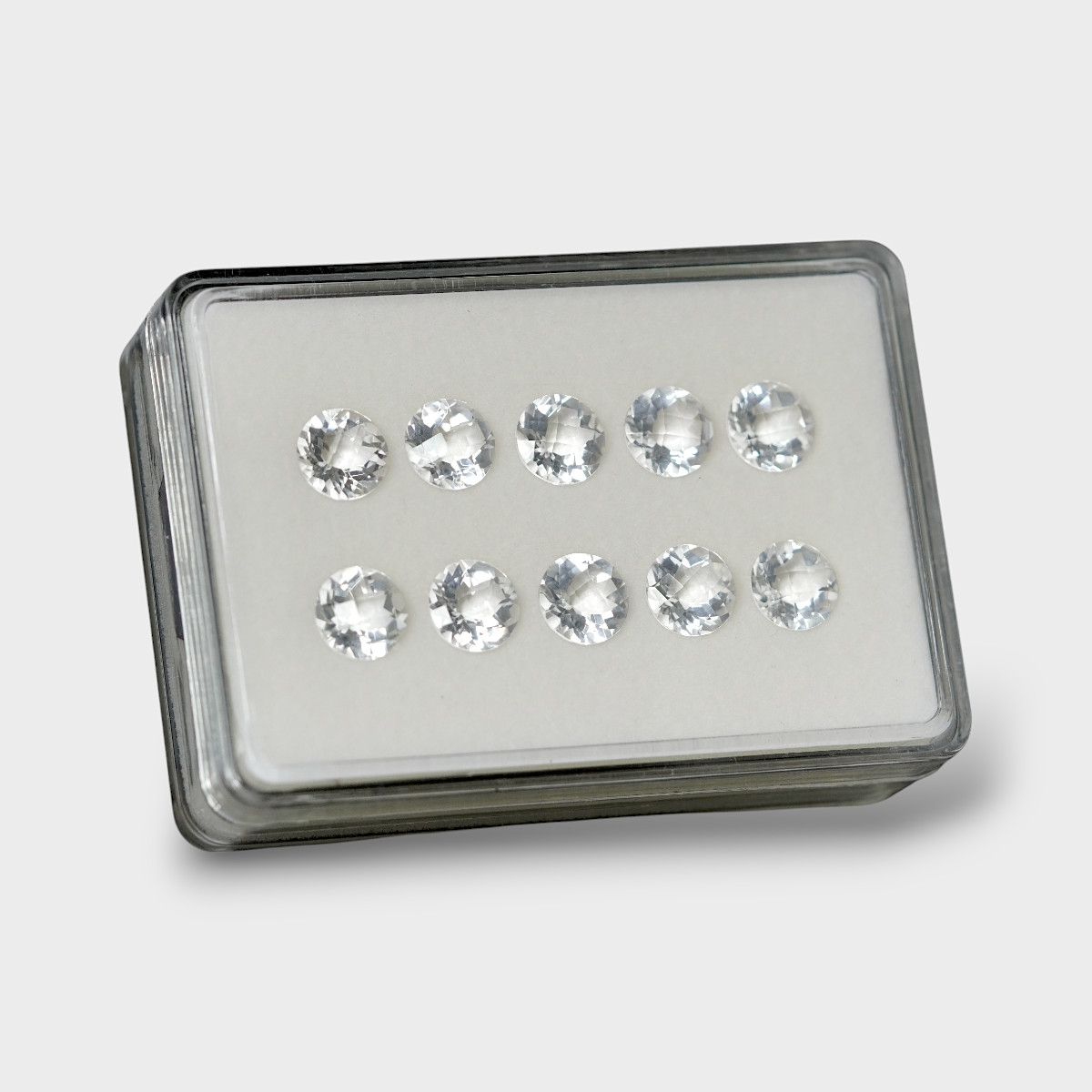 Buy This "AAA" Grade 10mm Checkerboard Round Shape Natural Crystal Quartz (Un-Treated) Gemstones Parcel. You Will Receive 10 Pcs. With a Total Weight of 33.07 Cts.. This Crystal Quartz Stone is Originated From Brazil and Masterfully Handcrafted by The Experienced Artisans of Jaipur (India).