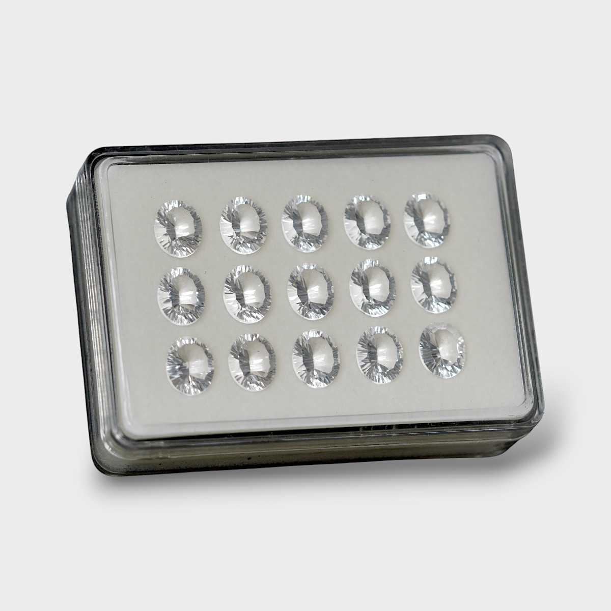 Buy This "AAA" Grade 11x9mm Concave Cut Oval Shape Natural Crystal Quartz (Un-Treated) Gemstones Parcel. You Will Receive 15 Pcs. With a Total Weight of 51.54 Cts.. This Crystal Quartz Stone is Originated From Brazil and Masterfully Handcrafted by The Experienced Artisans of Jaipur (India).