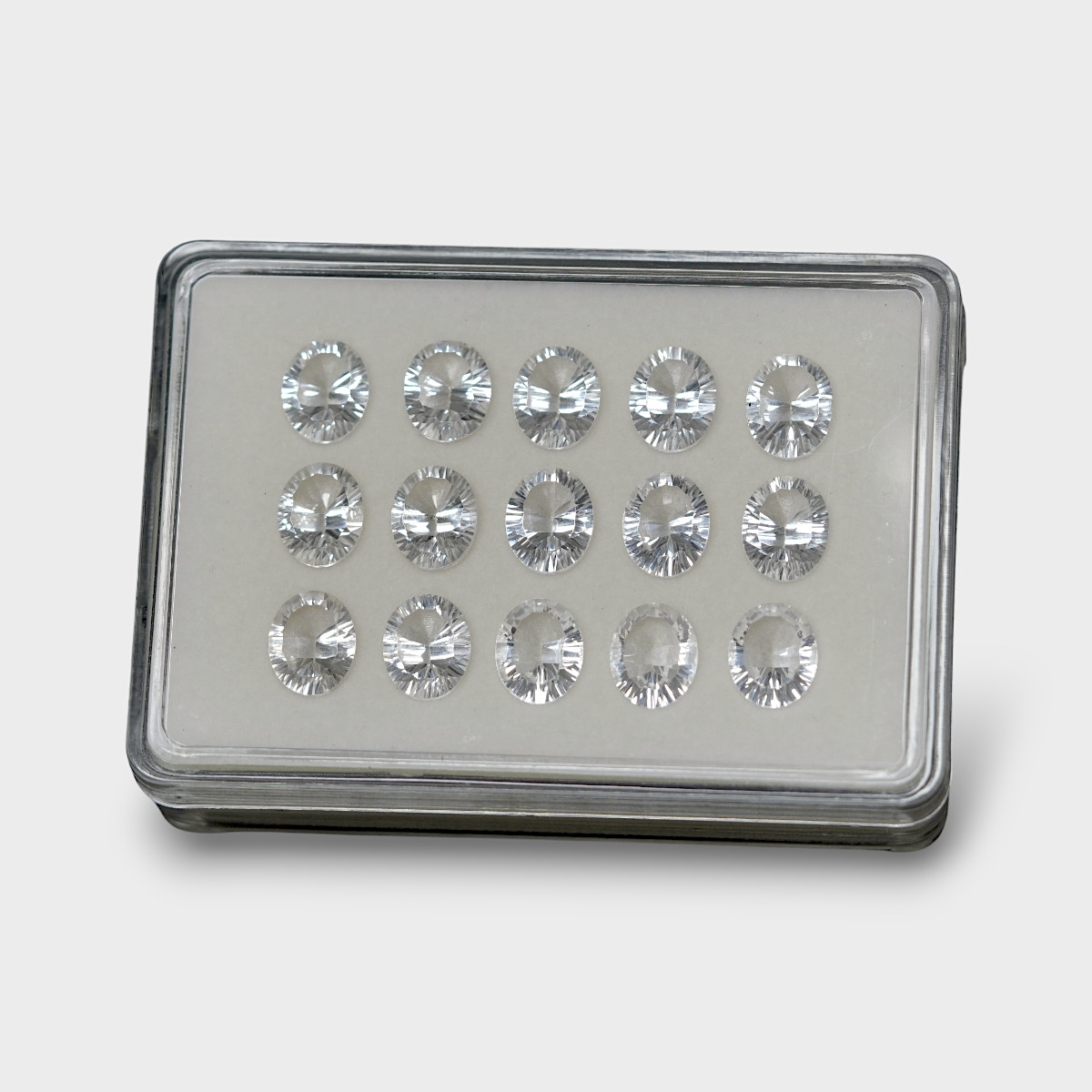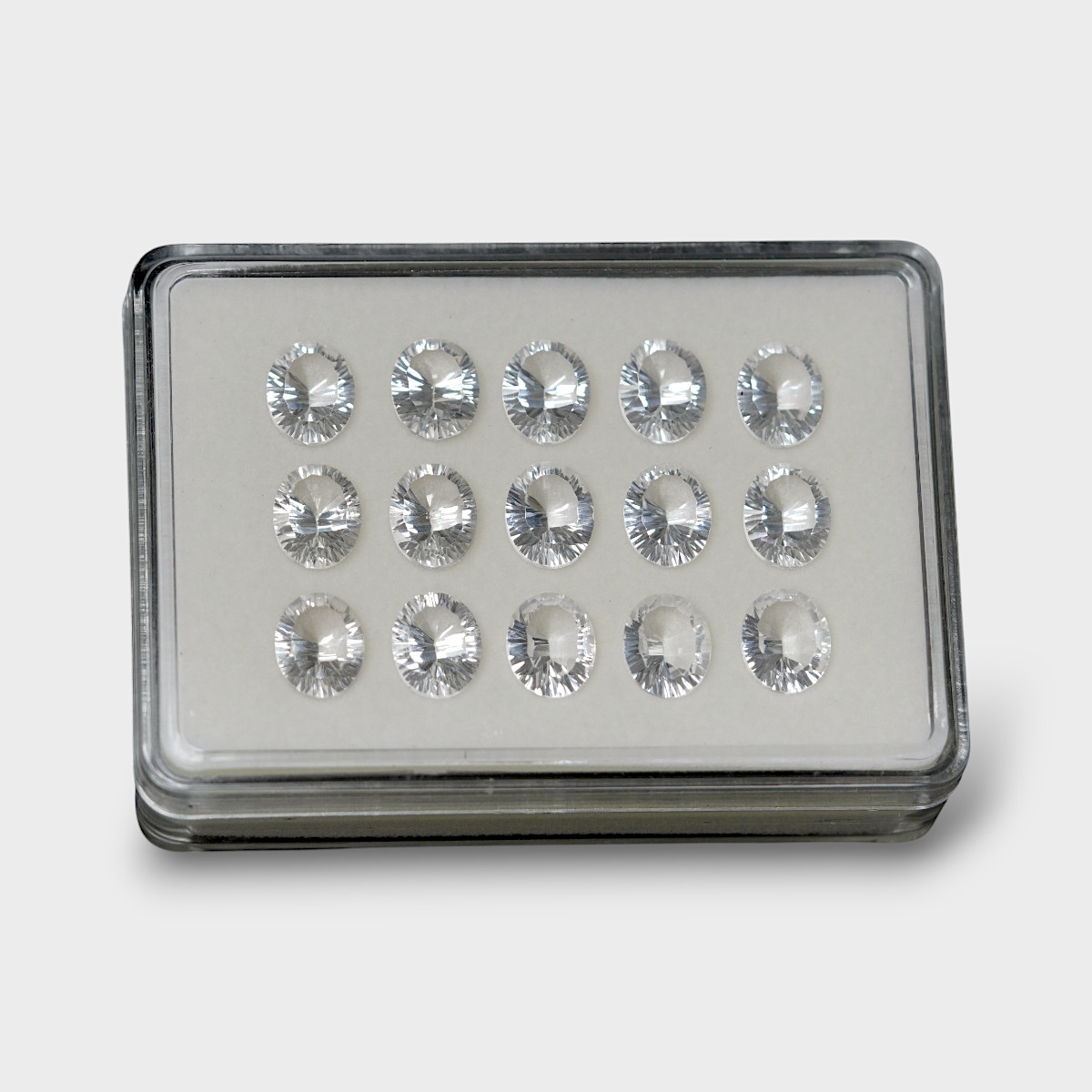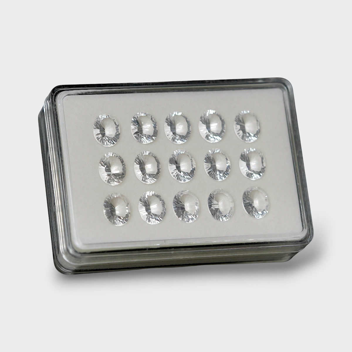 Buy This "AAA" Grade 11x9mm Concave Cut Oval Shape Natural Crystal Quartz (Un-Treated) Gemstones Parcel. You Will Receive 15 Pcs. With a Total Weight of 49.87 Cts.. This Crystal Quartz Stone is Originated From Brazil and Masterfully Handcrafted by The Experienced Artisans of Jaipur (India).