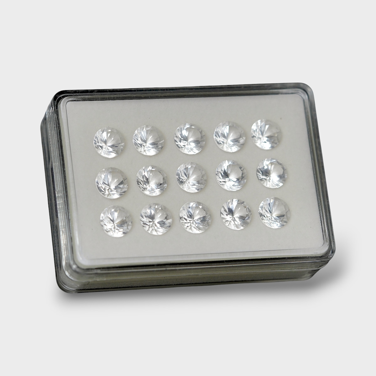Buy This "AAA" Grade 10mm Diamond Cut Round Shape Natural Crystal Quartz (Un-Treated) Gemstones Parcel. You Will Receive 15 Pcs. With a Total Weight of 54.11 Cts.. This Crystal Quartz Stone is Originated From Brazil and Masterfully Handcrafted by The Experienced Artisans of Jaipur (India).