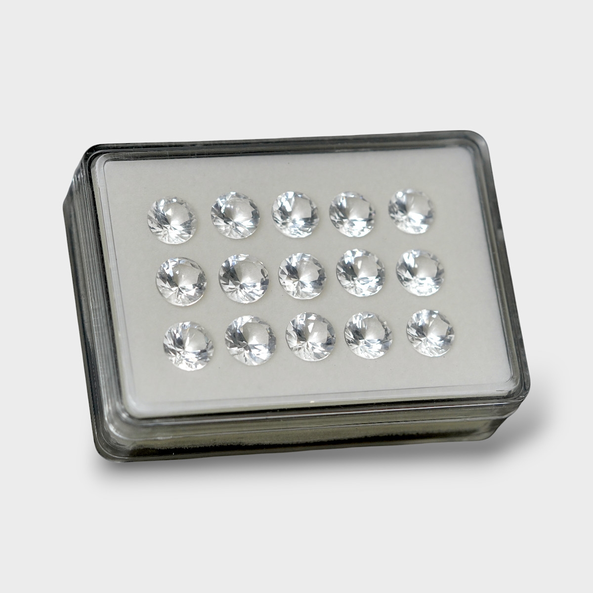 Buy This "AAA" Grade 10mm Diamond Cut Round Shape Natural Crystal Quartz (Un-Treated) Gemstones Parcel. You Will Receive 15 Pcs. With a Total Weight of 47.02 Cts.. This Crystal Quartz Stone is Originated From Brazil and Masterfully Handcrafted by The Experienced Artisans of Jaipur (India).