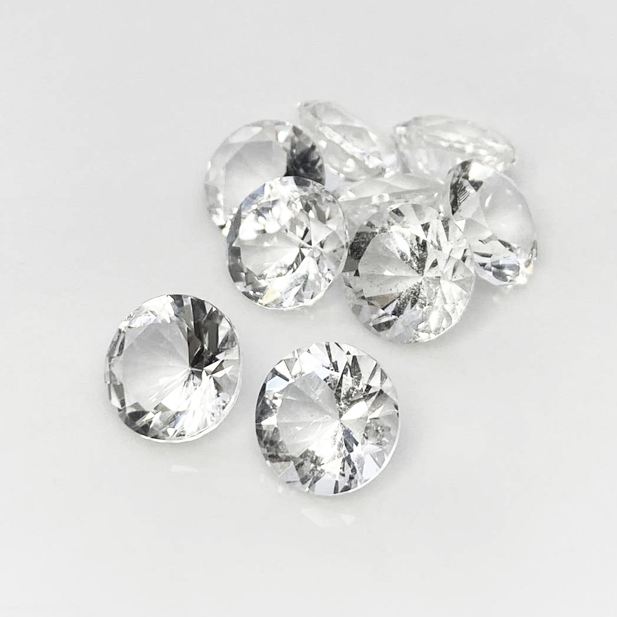 Buy This "AA" Grade 10mm Diamond Cut Round Shape Natural Crystal Quartz (Un-Treated) Gemstones Parcel. You Will Receive 9 Pcs. With a Total Weight of 29.98 Cts.. This Crystal Quartz Stone is Originated From Brazil and Masterfully Handcrafted by The Experienced Artisans of Jaipur (India).
