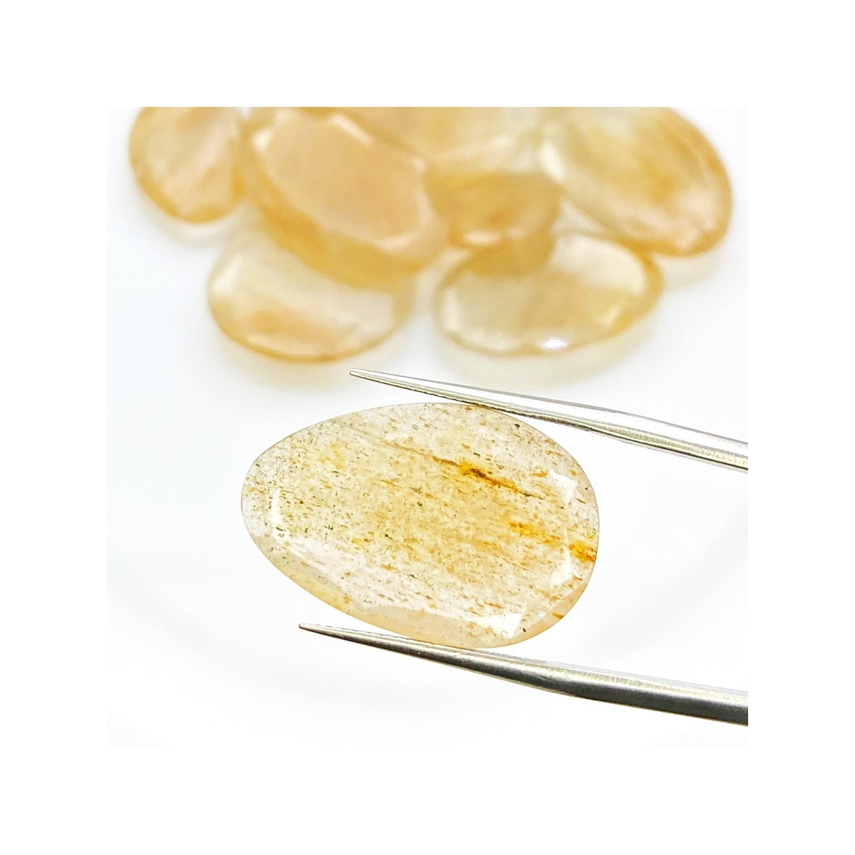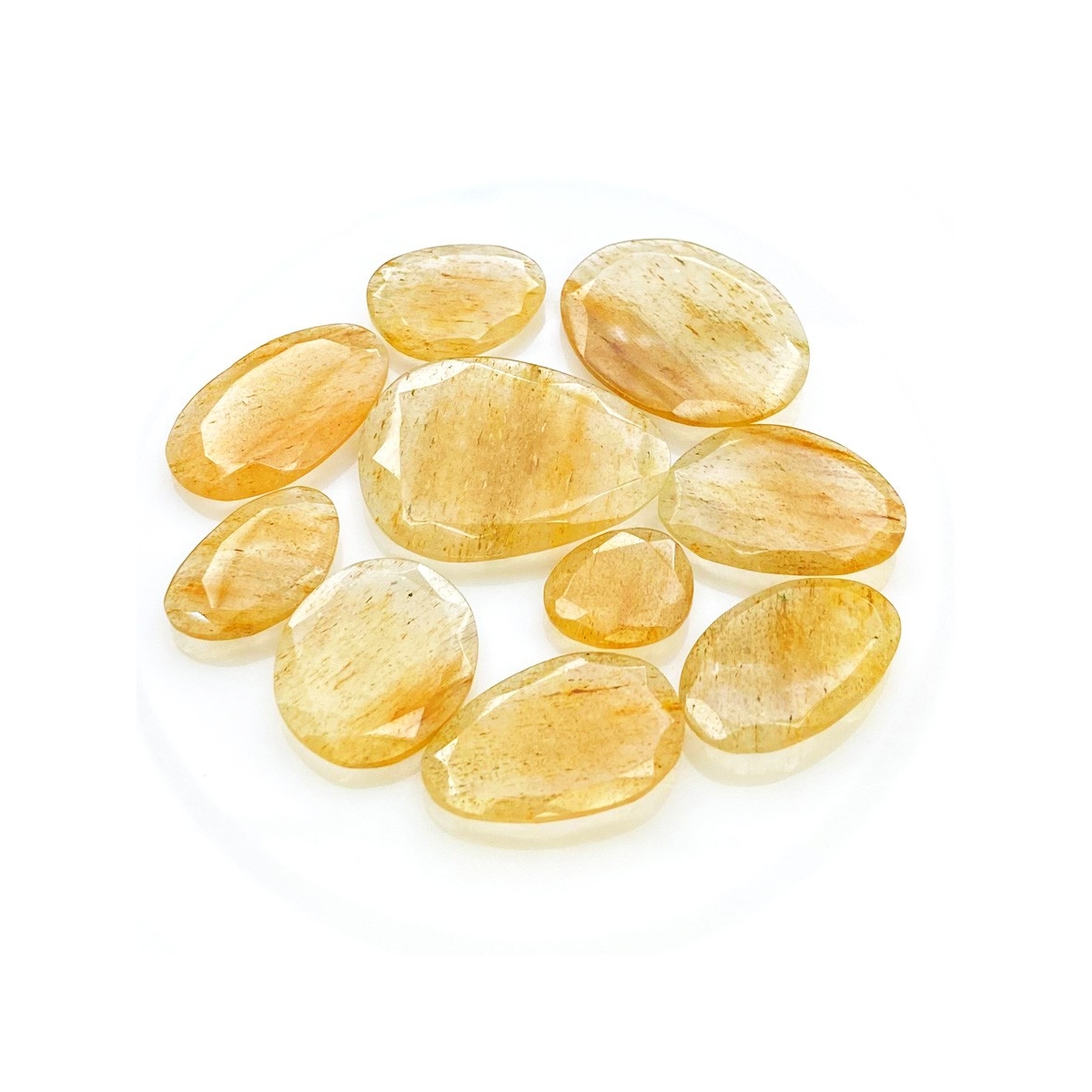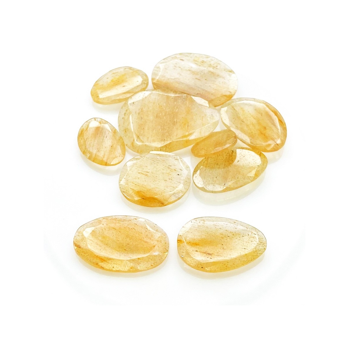Buy This "AA" Grade 14-30mm Rose Cut Irregular Shape Natural Golden Rutile (Un-Treated) Gemstones Parcel. You Will Receive 10 Pcs. With a Total Weight of 100.65 carat. This Golden Rutile Stone is Originated From Brazil and Masterfully Handcrafted by The Experienced Artisans of Jaipur (India).