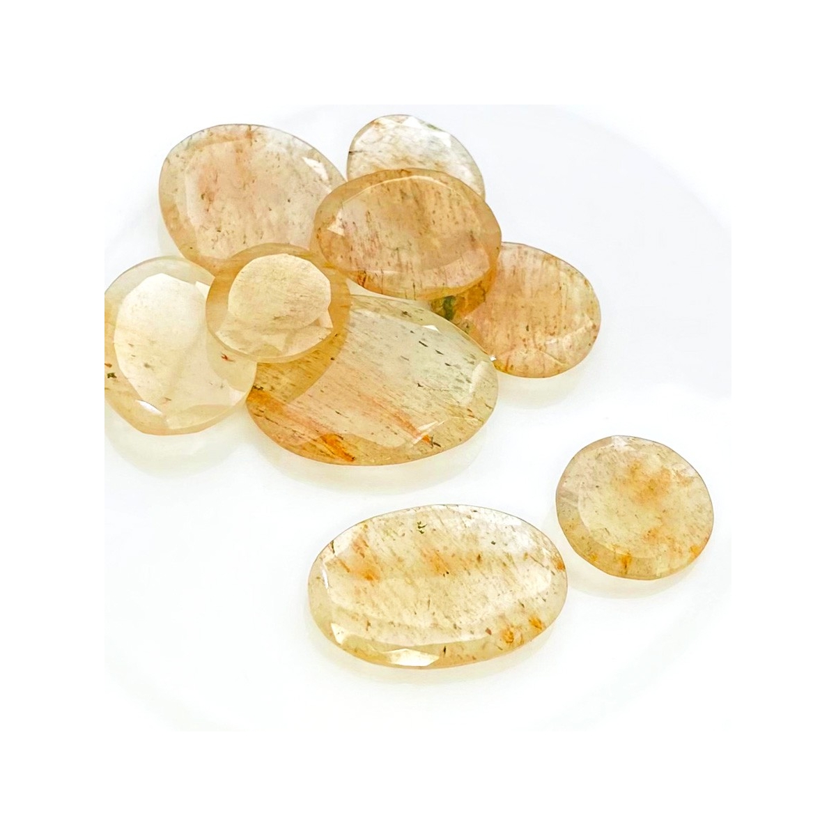 Buy This "AA" Grade 18-27mm Rose Cut Irregular Shape Natural Golden Rutile (Un-Treated) Gemstones Parcel. You Will Receive 9 Pcs. With a Total Weight of 108.1 Carat. This Golden Rutile Stone is Originated From Brazil and Masterfully Handcrafted by The Experienced Artisans of Jaipur (India).