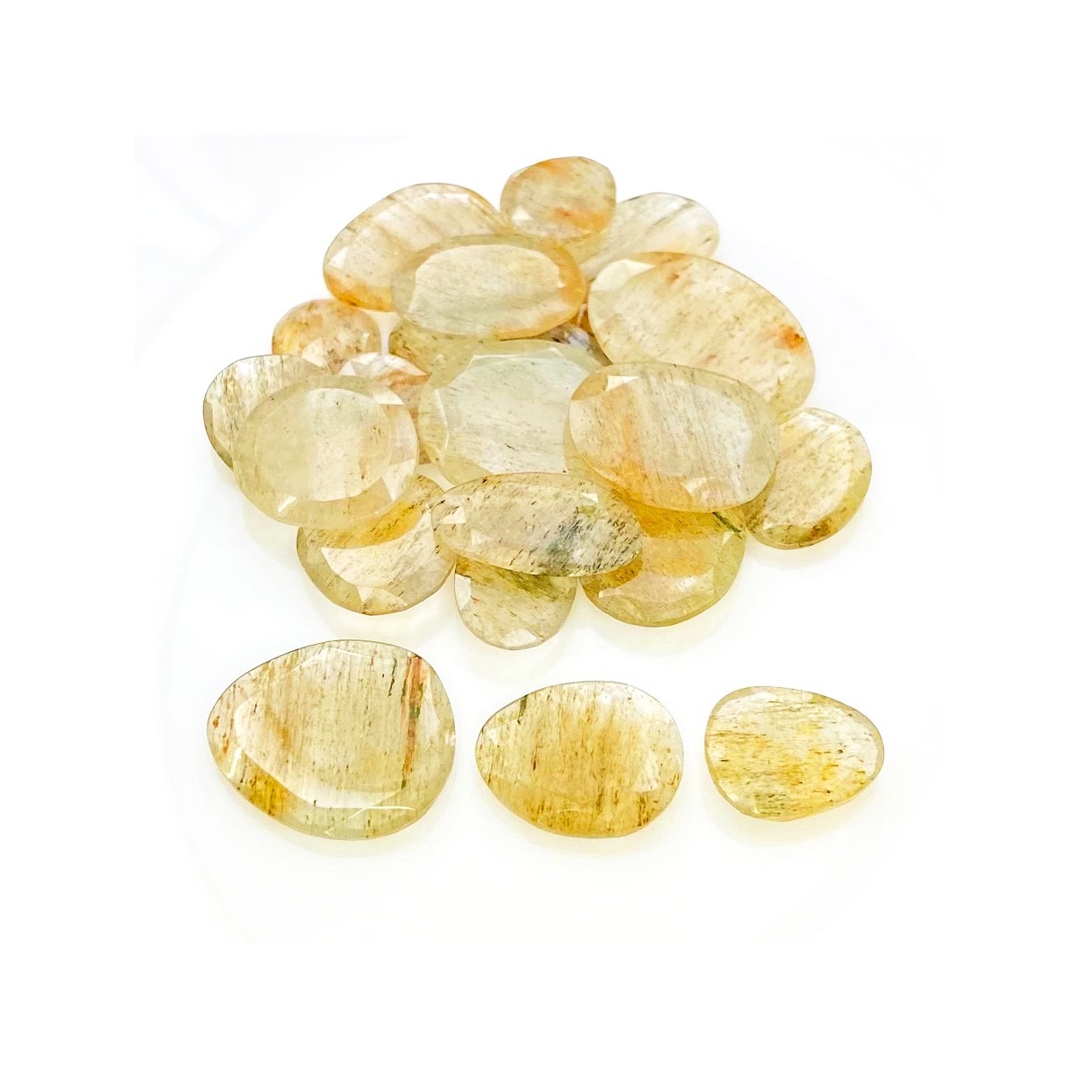 Buy This "AA" Grade 12x11-25x18.5mm Rose Cut Irregular Shape Natural Golden Rutile (Un-Treated) Gemstones Parcel. You Will Receive 22 Pcs. With a Total Weight of 144.5 Carat. This Golden Rutile Stone is Originated From Brazil and Masterfully Handcrafted by The Experienced Artisans of Jaipur (India).