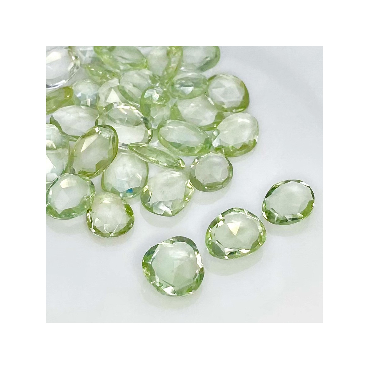 Buy This "AA+" Grade 7-11mm Rose Cut Irregular Shape Natural Green Amethyst (Heated) Gemstones Parcel. You Will Receive 34 Pcs. With a Total Weight of 55.30 Cts.. This Green Amethyst Stone is Originated From Brazil and Masterfully Handcrafted by The Experienced Artisans of Jaipur (India).