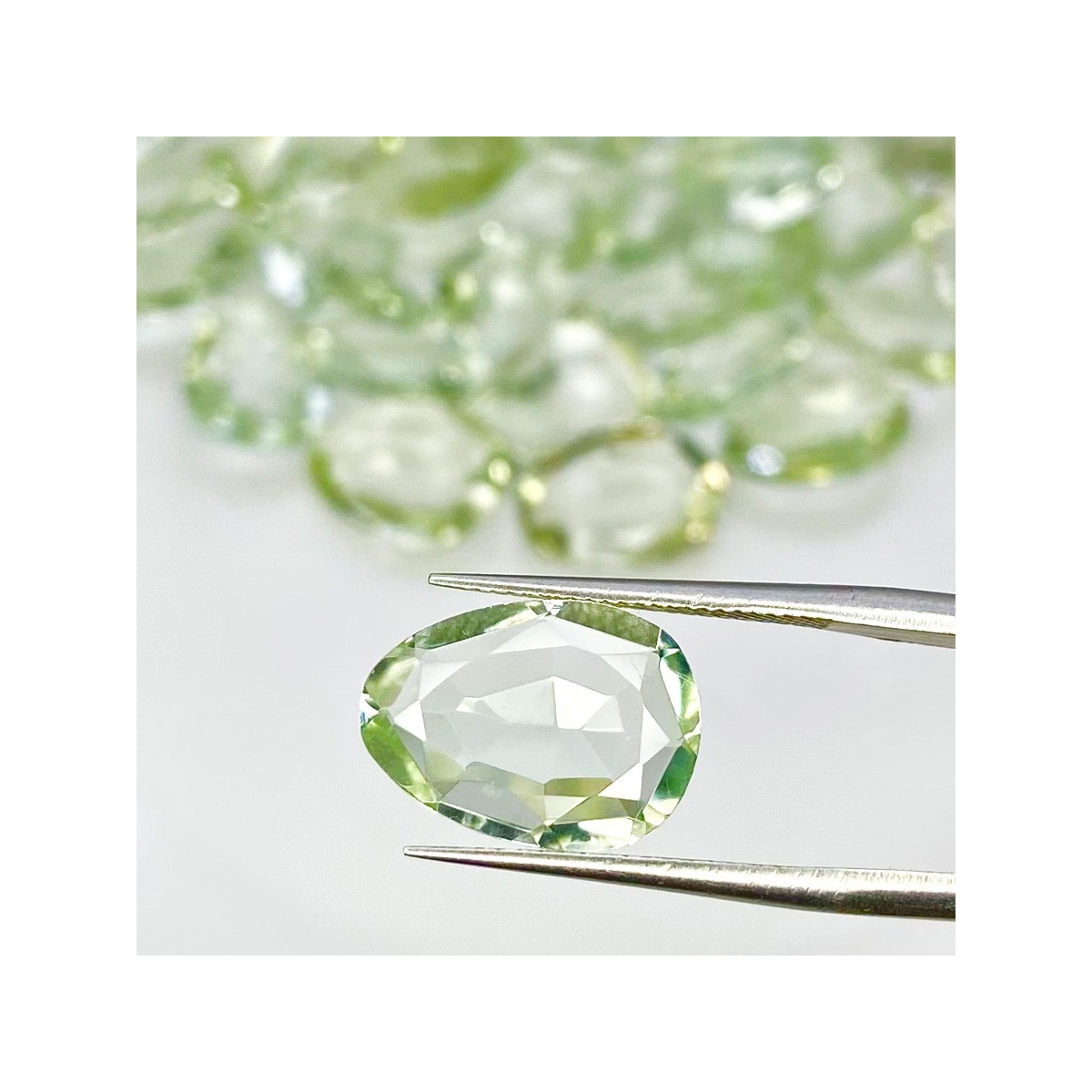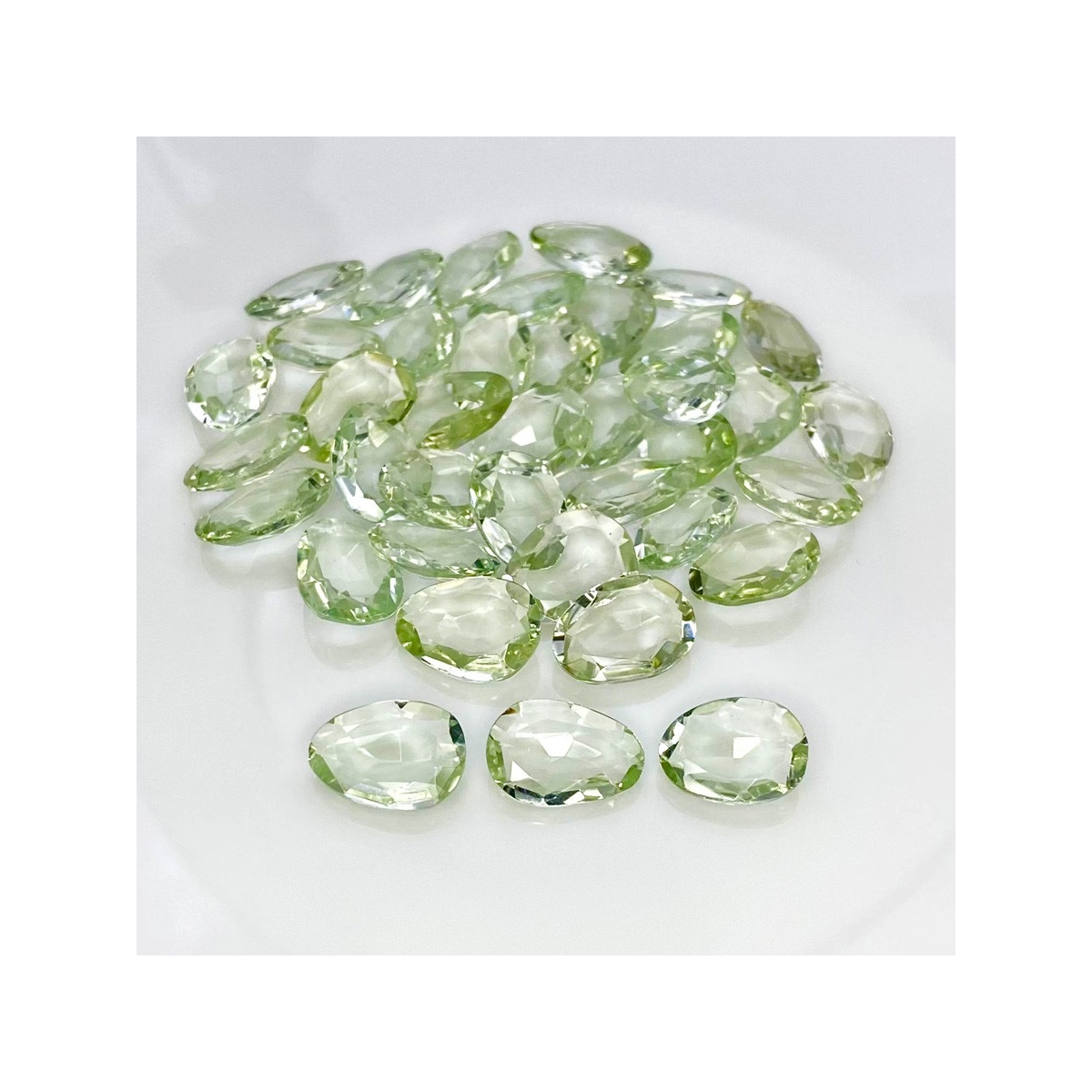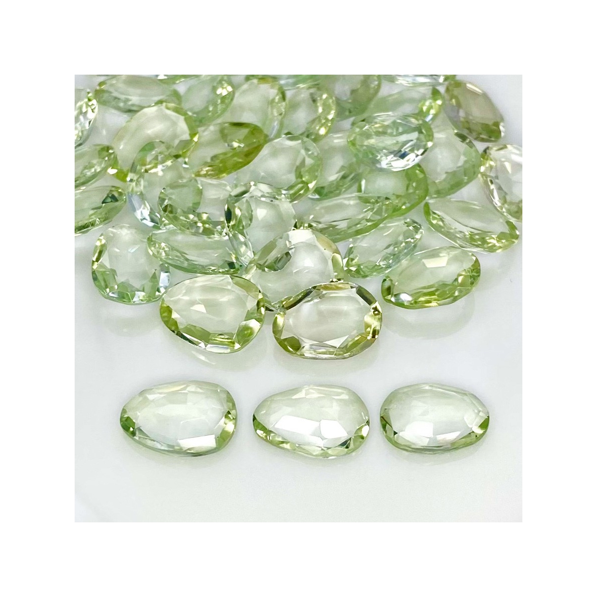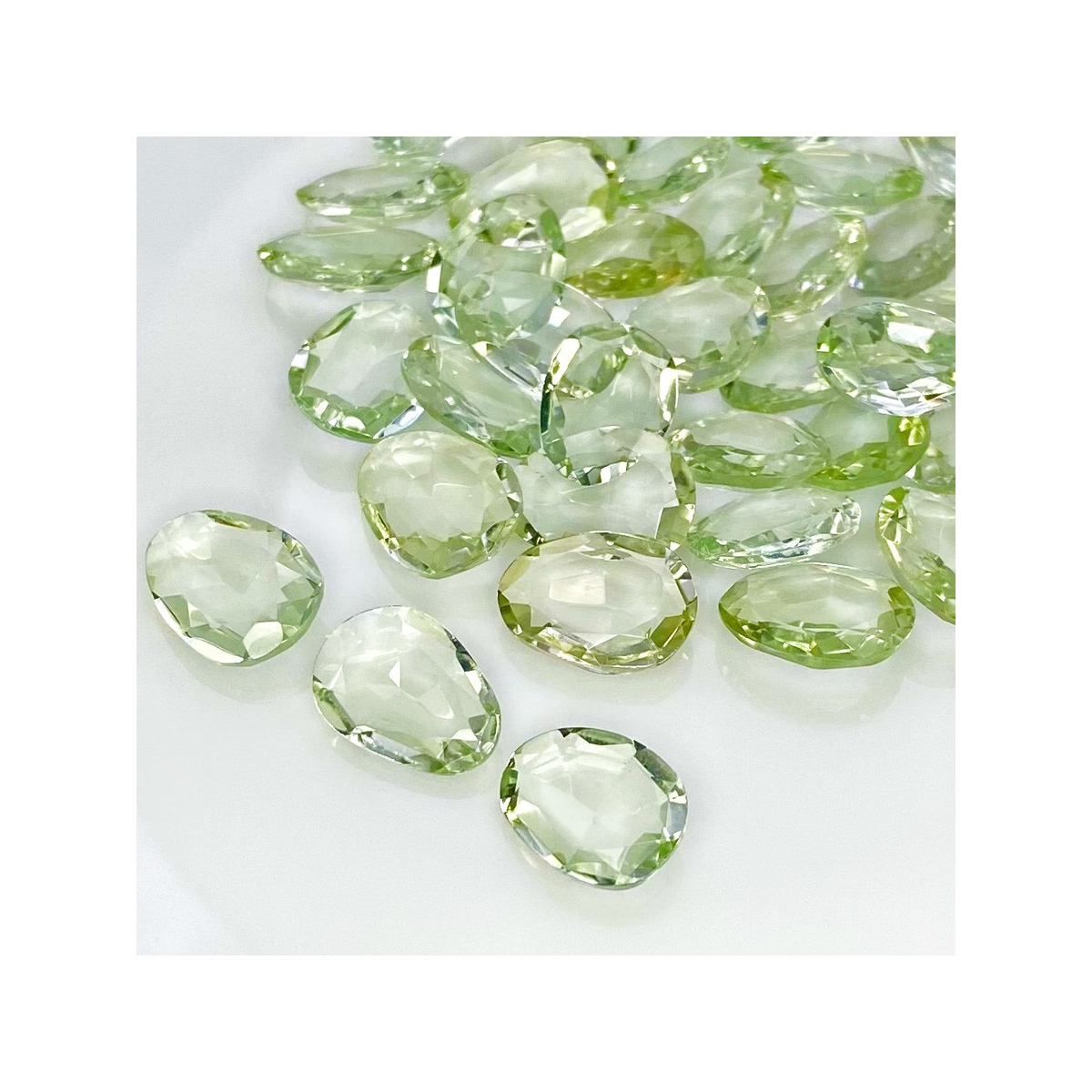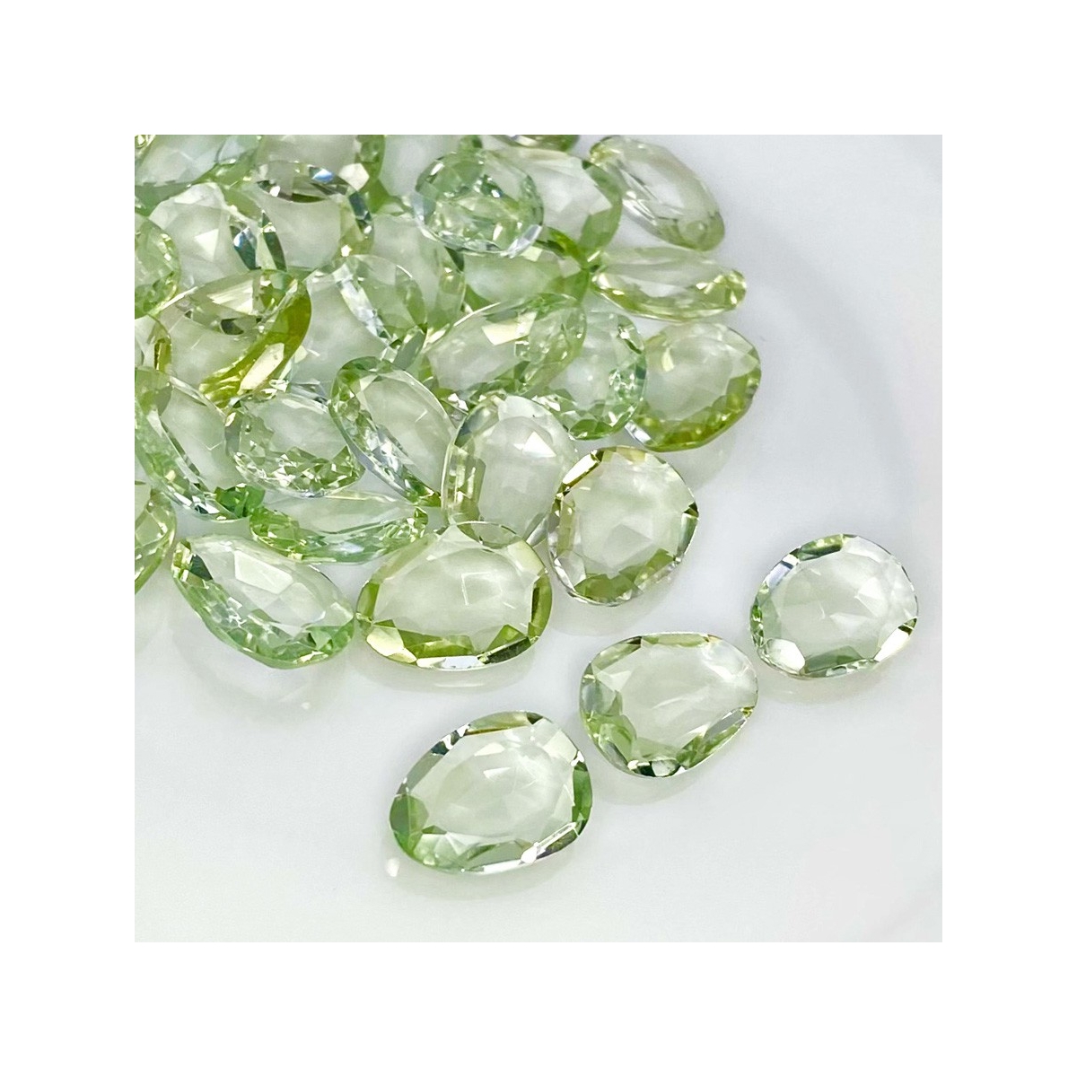 Buy This "AA+" Grade 12-14mm Rose Cut Irregular Shape Natural Green Amethyst (Heated) Gemstones Parcel. You Will Receive 39 Pcs. With a Total Weight of 131.55 Cts.. This Green Amethyst Stone is Originated From Brazil and Masterfully Handcrafted by The Experienced Artisans of Jaipur (India).