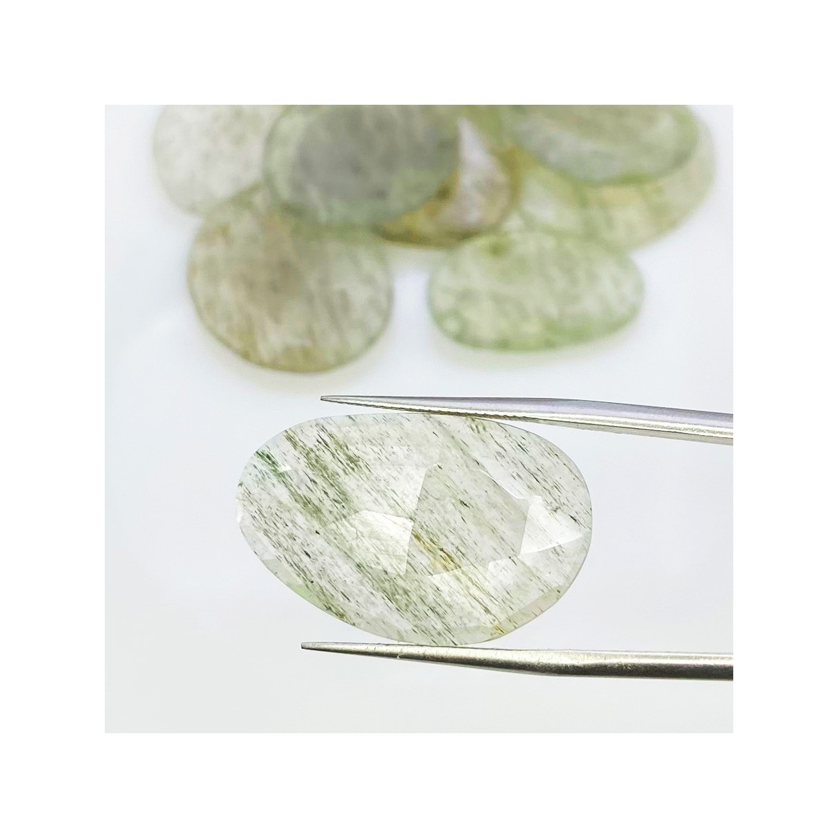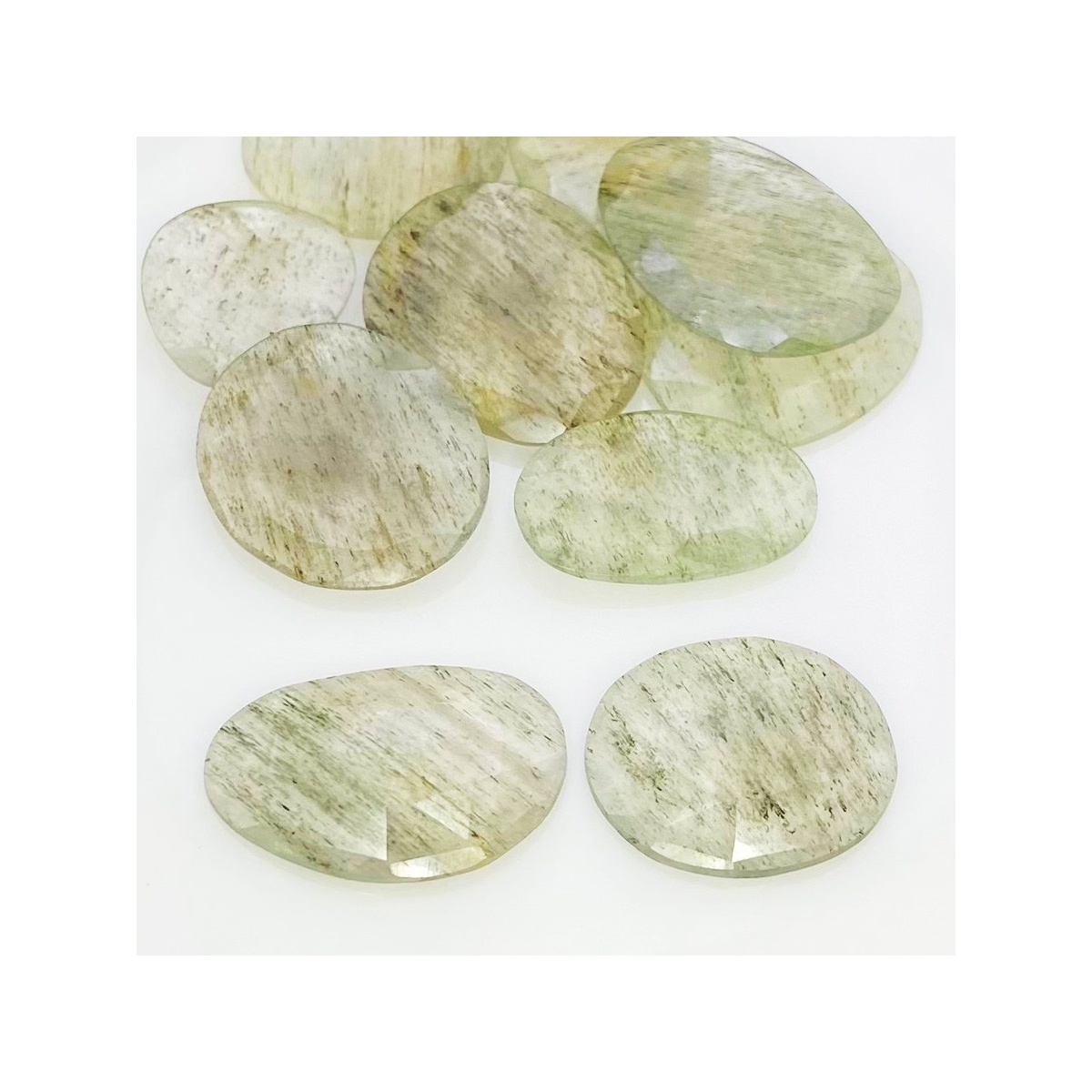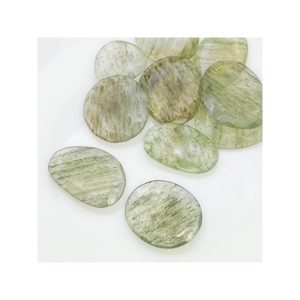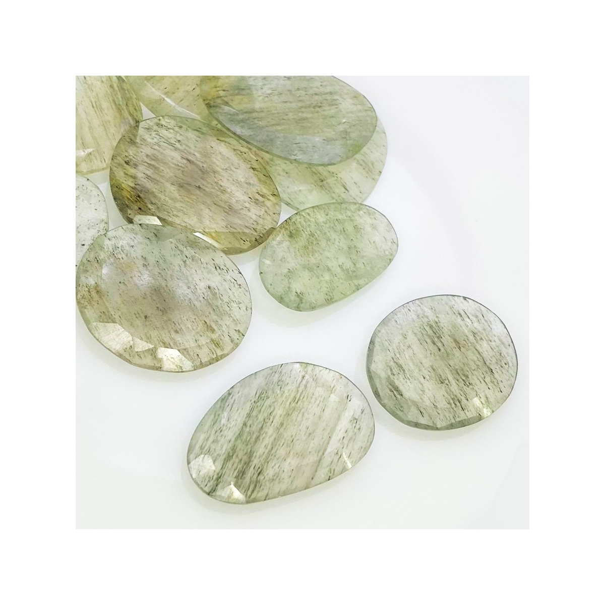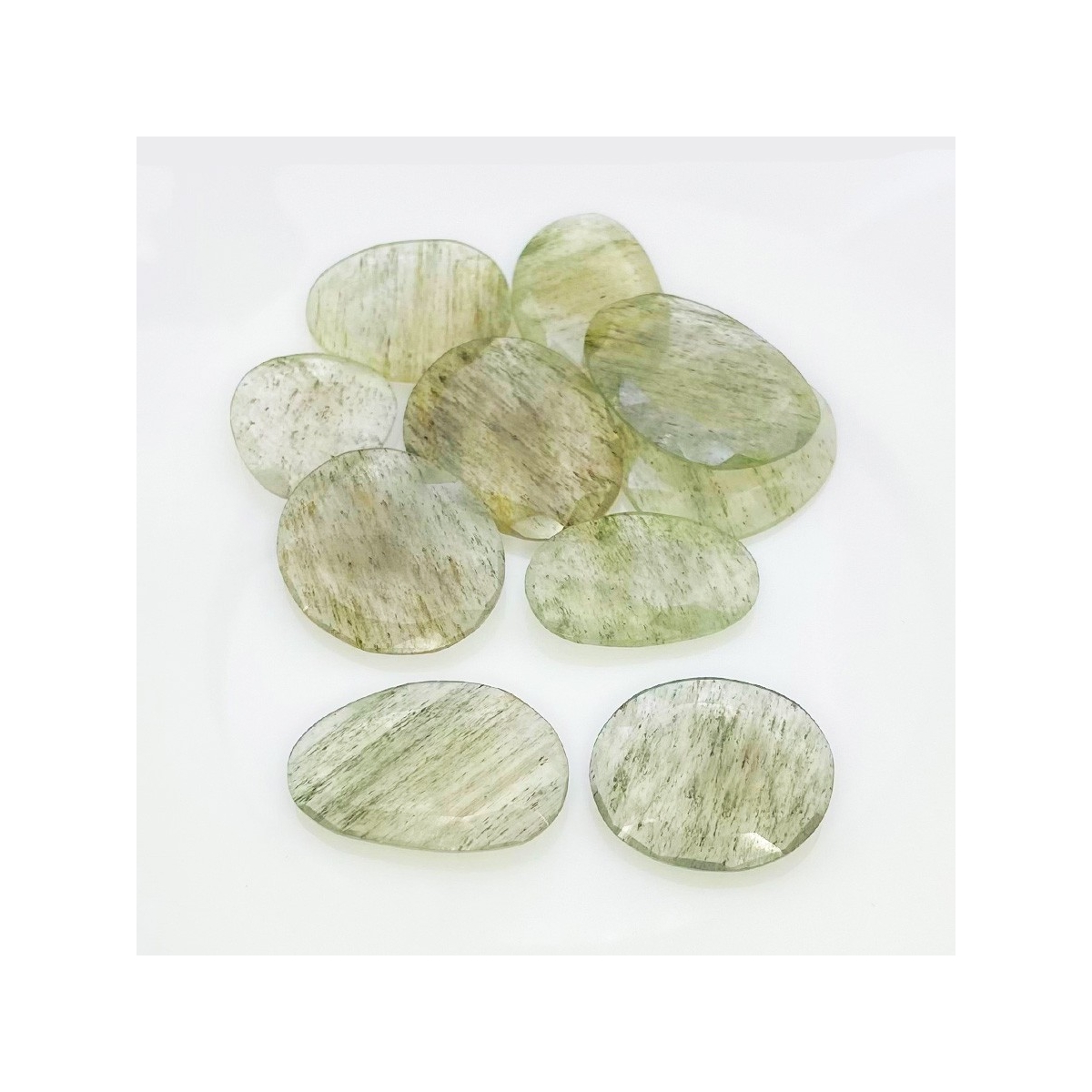 Buy This "AA" Grade 17.5-27mm Rose Cut Irregular Shape Natural Green Rutile (Un-Treated) Gemstones Parcel. You Will Receive 10 Pcs. With a Total Weight of 113.8 Carat. This Green Rutile Stone is Originated From Brazil and Masterfully Handcrafted by The Experienced Artisans of Jaipur (India).