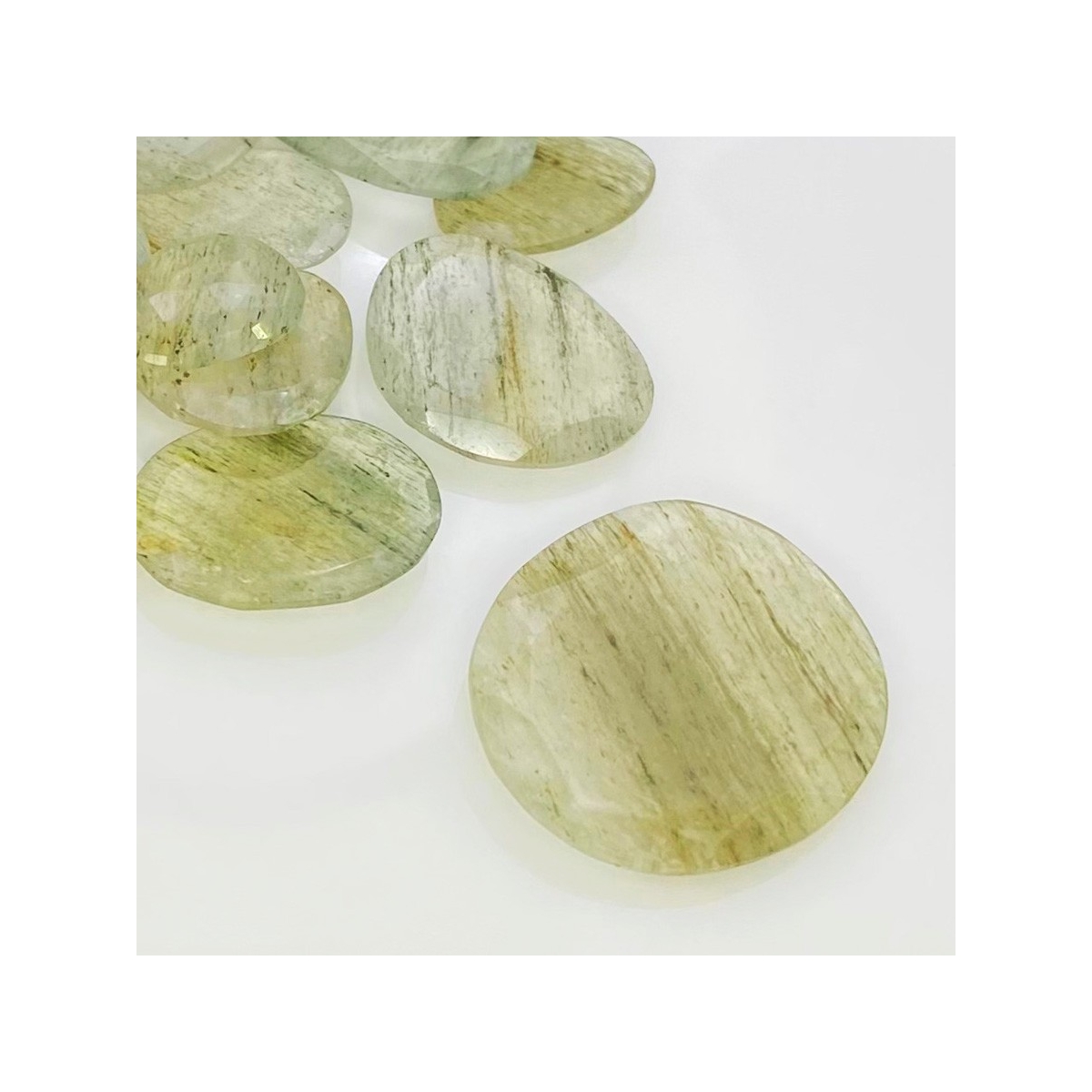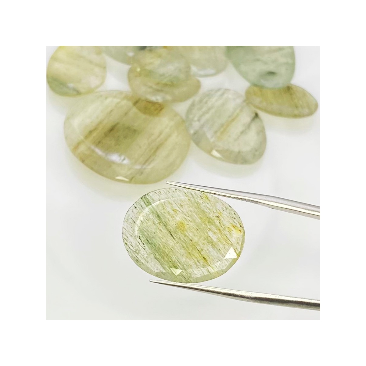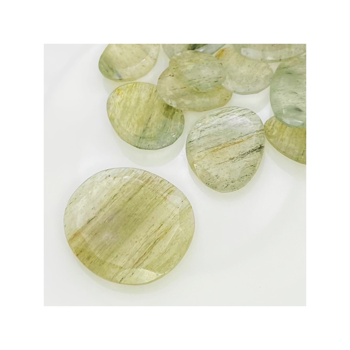 Buy This "AA" Grade 14-27mm Rose Cut Irregular Shape Natural Green Rutile (Un-Treated) Gemstones Parcel. You Will Receive 11 Pcs. With a Total Weight of 100.95 Carat. This Green Rutile Stone is Originated From Brazil and Masterfully Handcrafted by The Experienced Artisans of Jaipur (India).