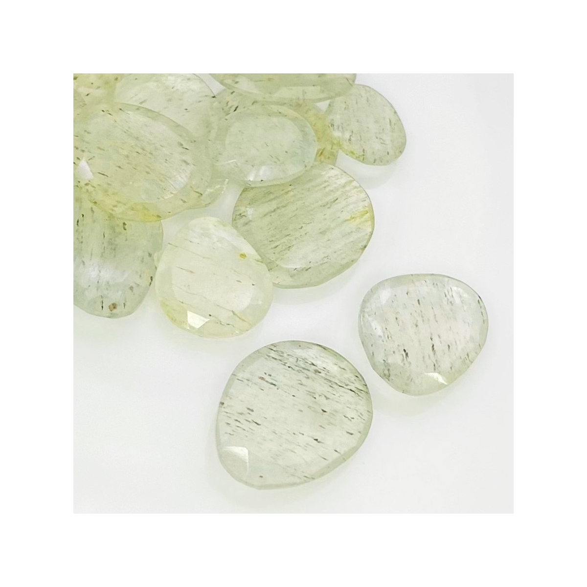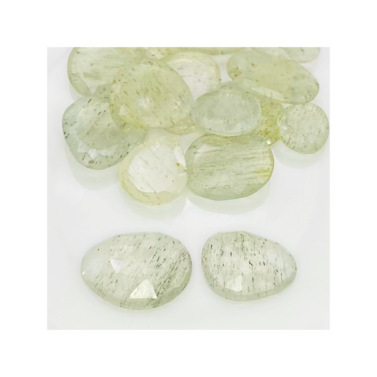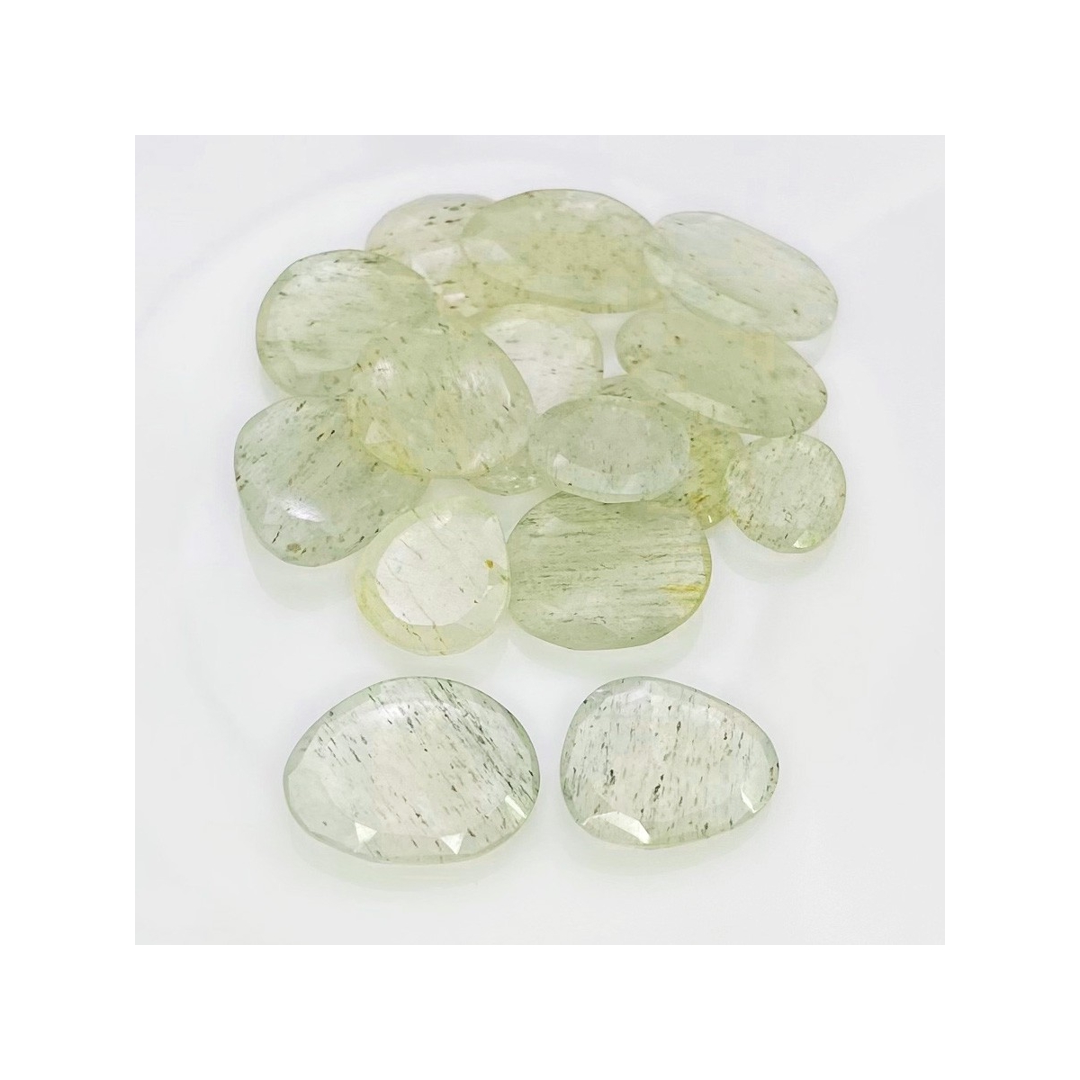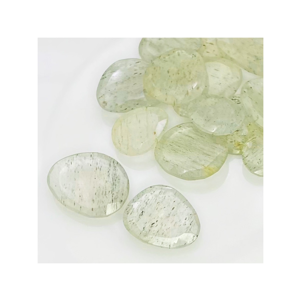 Buy This "AA" Grade 12.5-19.5mm Rose Cut Irregular Shape Natural Green Rutile (Un-Treated) Gemstones Parcel. You Will Receive 15 Pcs. With a Total Weight of 93.35 Carat. This Green Rutile Stone is Originated From Brazil and Masterfully Handcrafted by The Experienced Artisans of Jaipur (India).