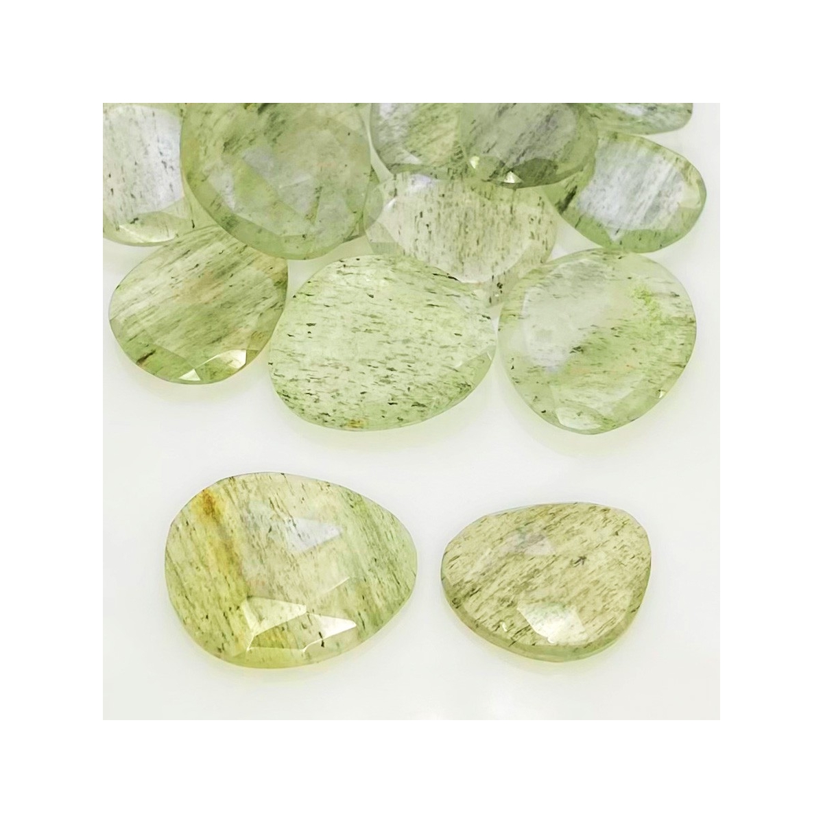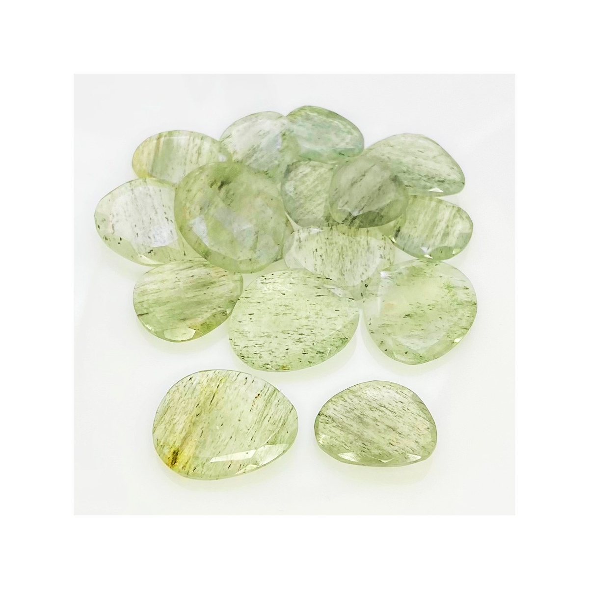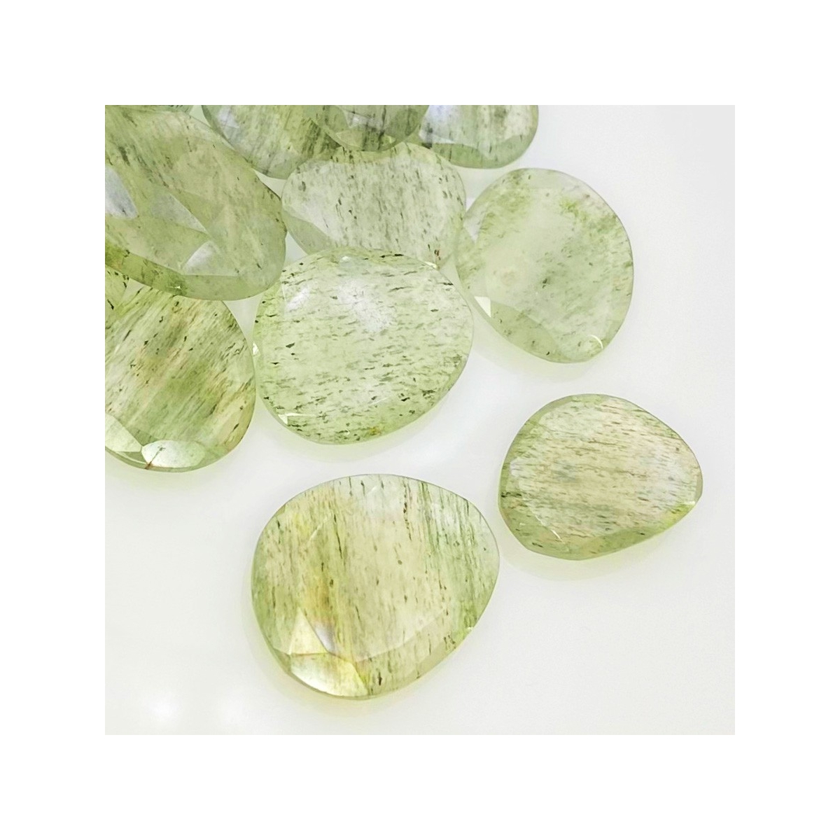 Buy This "AA" Grade 13.5-23mm Rose Cut Irregular Shape Natural Green Rutile (Un-Treated) Gemstones Parcel. You Will Receive 16 Pcs. With a Total Weight of 110.95 Carat. This Green Rutile Stone is Originated From Brazil and Masterfully Handcrafted by The Experienced Artisans of Jaipur (India).
